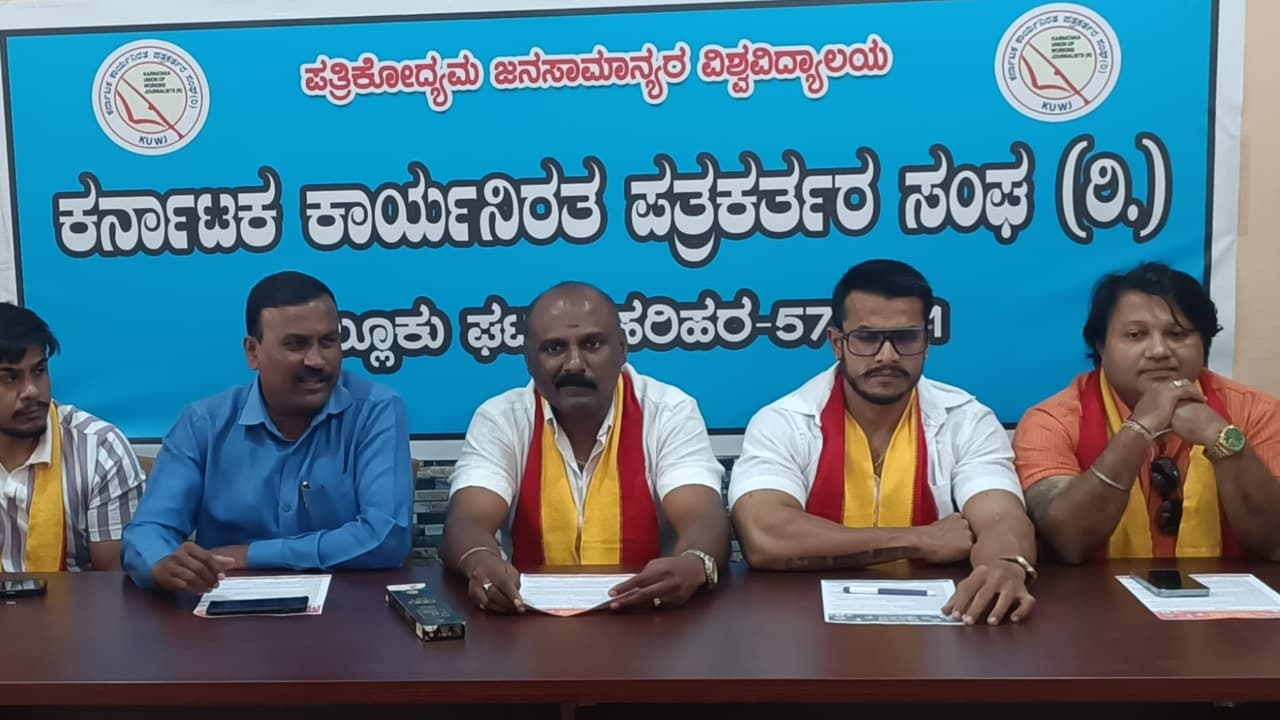 ಹರಿಹರದಲ್ಲಿ ಮಂಗಳವಾರ ವಿಶ್ವ ಕರವೇ ಪದಾಧಿಕಾರಿಗಳು ಪತ್ರಿಕಾಗೋಷ್ಠಿ ನಡೆಸಿ, ಬೆಸ್ಕಾಂ ಹಗರಣ ತನಿಖೆಗೆ ಒತ್ತಾಯಿಸಿದರು.