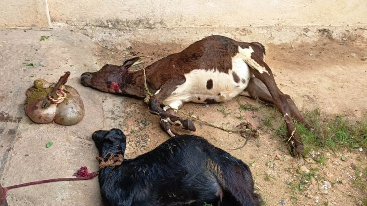 ಚಿರತೆ ದಾಳಿ ಮಾಡಿ ಕೊಟ್ಟಿಗೆಯಲ್ಲಿ ಕಟ್ಟಿ ಹಾಕಿದ್ದ ಹಸು, ಕರು ಹಾಗೂ ಎರಡು ಮೇಕೆಗಳನ್ನು ಕೊಂದು ಪರಾರಿಯಾಗಿರುವ ಘಟನೆ ಪಾಂಡವಪುರ ತಾಲೂಕಿನ ತಾಲೂಕಿನ ದೇವೇಗೌಡನಕೊಪ್ಪಲು ಗ್ರಾಮದಲ್ಲಿ ಸೋಮವಾರ ರಾತ್ರಿ ನಡೆದಿದೆ.