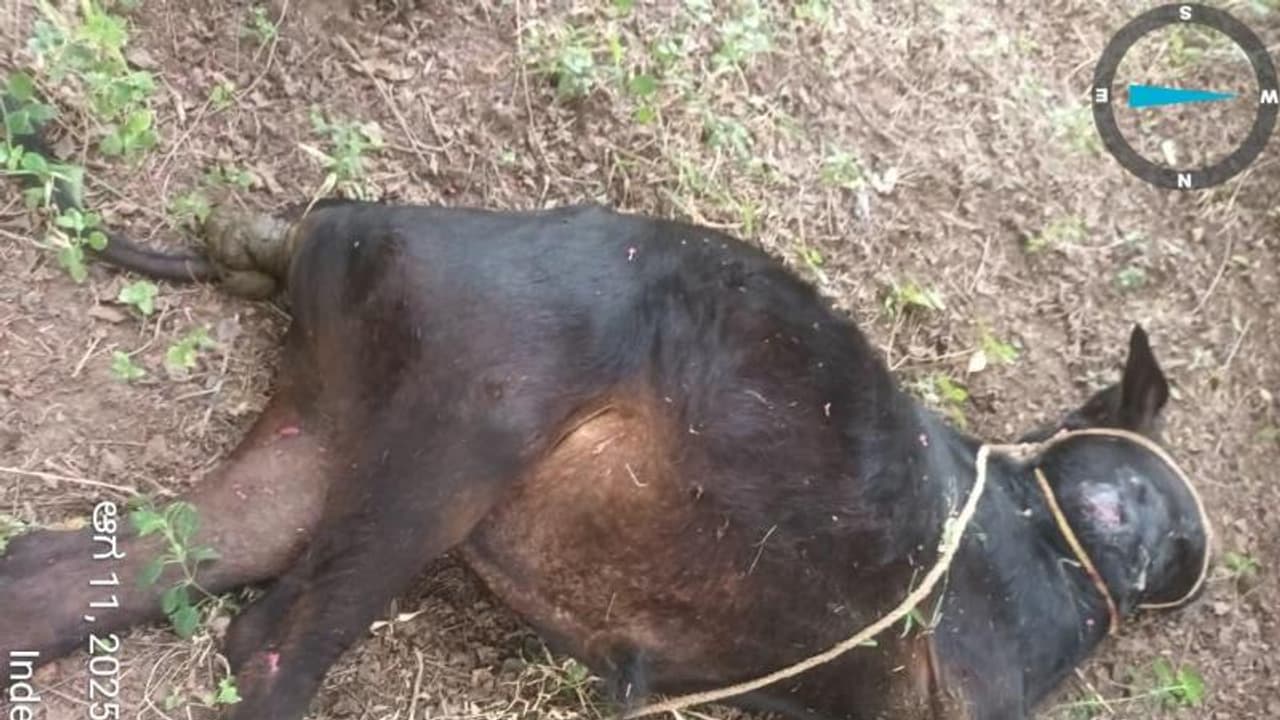 ಕೆಇಬಿ ಸ್ಟೇಷನ್ ಬಳಿ ವಾಸವಿರುವ ಗಂಗಪ್ಪಗೆ ಸೇರಿದ ಮನೆ ಕೊಟ್ಟಗೆಯಲ್ಲಿದ್ದ ಹಸುವನ್ನು ಭಾನುವಾರ ರಾತ್ರಿ ಹುಲಿ ದಾಳಿ ಮಾಡಿ ಸಾಯಿಸಿದೆ.