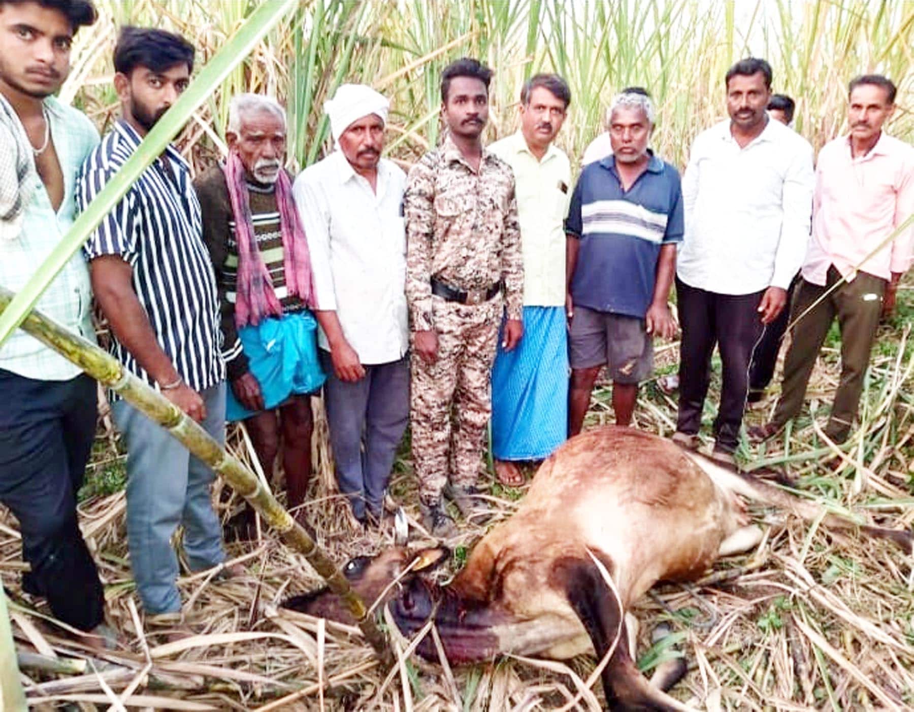 ಕನ್ನಡಪ್ರಭ ವಾರ್ತೆ ಸರಗೂರುತಾಲೂಕಿನ ಸಾಗರೆ ಗ್ರಾಮದಲ್ಲಿ ಬುಧವಾರ ನೆಲ್ಲೂರು ಕೆರೆ ರಸ್ತೆಯಲ್ಲಿರುವ ಸಾಗರೆಯ ವೆಂಕಟರಮಣಶೆಟ್ಟಿ ಎಂಬವರ ತೋಟದ ಮನೆಯ ಮುಂಭಾಗ ಕಟ್ಟಿದ್ದ ಇಲಾತಿ ಹಸುವನ್ನು ಹುಲಿಯೊಂದು ಕೊಂಡೊಯ್ದು ಕಬ್ಬಿನ ತೋಟದ ಒಳಗಡೆ ತಿಂದು ಹಾಕಿದೆ.ವಿಷಯ ತಿಳಿದ ಅರಣ್ಯ ಇಲಾಖೆಯವರ ಗಮನಕ್ಕೆ ಸ್ಥಳಕ್ಕೆ ಸಿಬ್ಬಂದಿಯವರು ಬಂದು ಸ್ಥಳ ಪರಿಶೀಲನೆ ನಡೆಸಿದರು. ಮೃತ ಹಸುವಿನ ಮೌಲ್ಯ ಸುಮಾರು 70 ಸಾವಿರ ಆಗಿರುತ್ತದೆ ಎಂದು ನೊಂದ ರೈತ ತಿಳಿಸಿದ್ದಾರೆ.ಈ ಹಿಂದೆ ಹುಲಿ ಹೆಜ್ಜೆ ಗುರುತು ಇದೆ ಎಂದು ಸರಗೂರಿನ ಅರಣ್ಯ ಇಲಾಖೆಯವರಿಗೆ ಅರ್ಜಿ ಸಲ್ಲಿಸಿದ್ದರು.ತಾಲೂಕಿನ ಸಾಗರೆ ಗ್ರಾಮದಲ್ಲಿ ಹುಲಿಯ ಉಪಟಳ ಜೋರಾಗಿದ್ದು, ಕೂದಲೆಳೆಯ ಅಂತರದಲ್ಲಿ ರೈತರೊಬ್ಬರು ಪಾರಾಗಿದ್ದರು. ಹುಲಿ ನೋಡಿದ ಅಕ್ಕ, ಪಕ್ಕ ಜಮೀನಿನವರು ಜೋರಾಗಿ ಕೂಗಿ ಕೊಂಡಾಗ ಹುಲಿ ಪರಾರಿಯಾಗಿದೆ. ನಾಲ್ಕು ದಿನಗಳಿಂದ ಮೂರು ಎತ್ತುಗಳು ಮತ್ತು ಮೇಕೆಗಳ ದಾಳಿ ನಡೆಸಿ ತಿಂದಿದೆ ಎಂದು ಗ್ರಾಮಸ್ಥರು ತಿಳಿಸಿದರು.ಗ್ರಾಮದಲ್ಲಿ ಓಡಾಡುತ್ತಿರುವ ಹುಲಿ ಸೆರೆಗೆ ಅರಣ್ಯ ಇಲಾಖೆ ಅಧಿಕಾರಿಗಳು ಮುಂದಾಗಬೇಕು ಎಂದು ಸಾಗರೆ ಗ್ರಾಮದ ಸಕಲೇಶ್ ಅವರು ಸರಗೂರು ವಲಯ ಅರಣ್ಯಾಧಿಕಾರಿ ಅಕ್ಷಯ್ ಕುಮಾರ್ ಅವರಿಗೆ ಮನವಿ ಪತ್ರ ಸಲ್ಲಿಸಿದರು.ರೈತ ವೆಂಕಟರಮಣಶೆಟ್ಟಿ, ಸಕಲೇಶ್, ನಿವೃತ್ತ ಟಿ.ಸಿ ಬಸವರಾಜು, ಗ್ರಾಮಸ್ಥರಾದ ಮಹೇಶ್, ಶಿವರಾಂ, ರಘು, ಜಯಶಂಕರ್, ರವಿ, ಸೋಮೇಶ್, ರಾಜೇಶ್ ಇದ್ದರು.