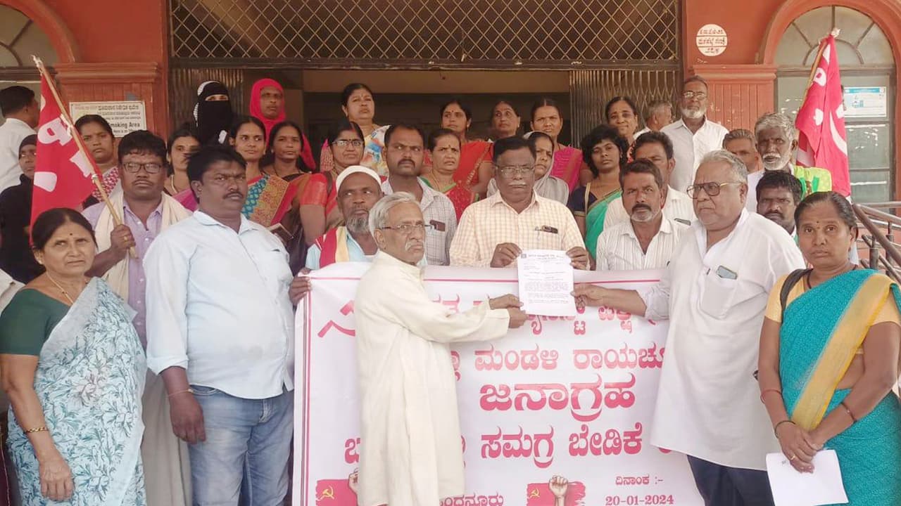 ಕಾರ್ಮಿಕರಿಗೆ ಕನಿಷ್ಠ ಕೂಲಿ ರು.600 ಹೆಚ್ಚಿಸುವಂತೆ ಸೇರಿಸಿ ವಿವಿಧ ಬೇಡಿಕೆ ಈಡೇರಿಸುವಂತೆ ಸಿಂಧನೂರಿನಲ್ಲಿ ಜನಾಗ್ರಹ ಚಳವಳಿ ನಡೆಸಲಾಯಿತು. ಪಕ್ಷದ ವತಿಯಿಂದ ಗ್ರೇಡ್-2 ತಹಸೀಲ್ದಾರ್ ಚಂದ್ರಶೇಖರಗೆ ಮನವಿ ಪತ್ರ ಸಲ್ಲಿಸಲಾಯಿತು.