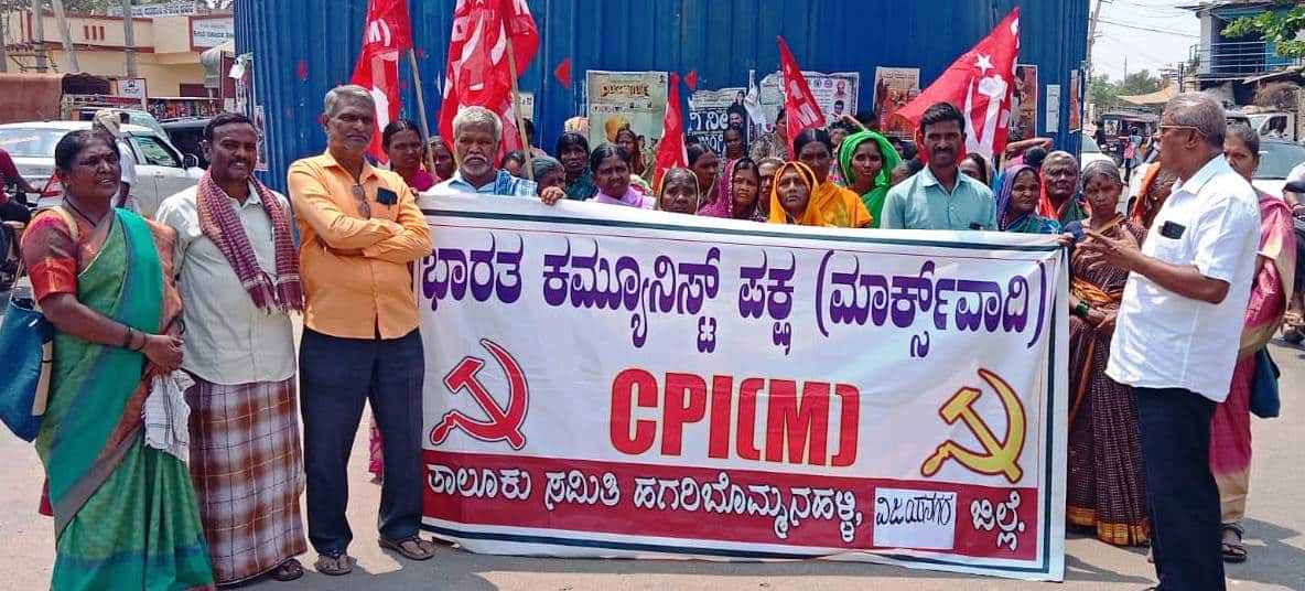 ಇರಾನ್ ಮೇಲಿನ ಅಮೆರಿಕ, ಇಸ್ರೇಲ್ ದೇಶಗಳ ದುರಾಕ್ರಮಣ ವಿರೋಧಿಸಿ ಹಗರಿಬೊಮ್ಮನಹಳ್ಳಿ ಸಿಪಿಎಂ ಪಕ್ಷದ ಪದಾಧಿಕಾರಿಗಳು ಮತ್ತು ಕಾರ್ಯಕರ್ತರು ಶನಿವಾರ ಪ್ರತಿಭಟನೆ ನಡೆಸಿದರು.