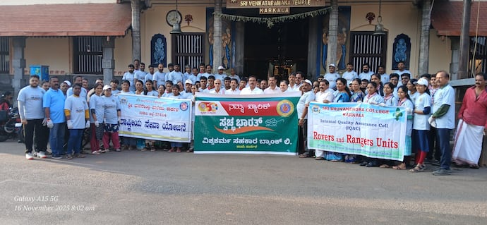 ಕಾರ್ಯಕ್ರಮದ ಅಂಗವಾಗಿ ಶ್ರೀ ವೆಂಕಟರಮಣ ದೇವಸ್ಥಾನ ರಸ್ತೆ -ಮಾರ್ಕೆಟ್ - ಕಾರ್ಕಳ ಬಸ್ ನಿಲ್ದಾಣ ಮಾರ್ಗದುದ್ದಕ್ಕೂ ವ್ಯಾಪಕ ಸ್ವಚ್ಛತಾ ಶ್ರಮದಾನ ನಡೆಯಿತು.;Resize=(128,128))