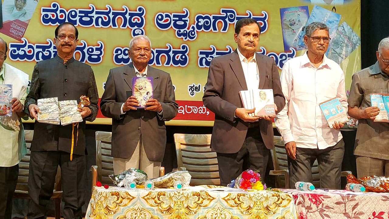 ಚಿಕ್ಕಮಗಳೂರಿನ ಕುವೆಂಪು ಕಲಾಮಂದಿರದಲ್ಲಿ ಭಾನುವಾರ ನಡೆದ ಓಣಿ ಮನೆ ಪ್ರಕಾಶನದ 25ನೇ ಸಂಭ್ರಮೋತ್ಸವ ಕಾರ್ಯಕ್ರಮದಲ್ಲಿ ಕರ್ನಾಟಕ ಜಾನಪದ ವಿಶ್ವವಿದ್ಯಾನಿಲಯದ ವಿಶ್ರಾಂತ ಕುಲಪತಿ ಪ್ರೊ. ಅಂಬಳಿಕೆ ಹಿರಿಯಣ್ಣ ಅವರು ಸಾಹಿತಿ ಮೇಕನಗದ್ದೆ ಲಕ್ಷ್ಮಣಗೌಡರು ಬರೆದಿರುವ ಪುಸ್ತಕಗಳನ್ನು ಬಿಡುಗಡೆಗೊಳಿಸಿದರು.