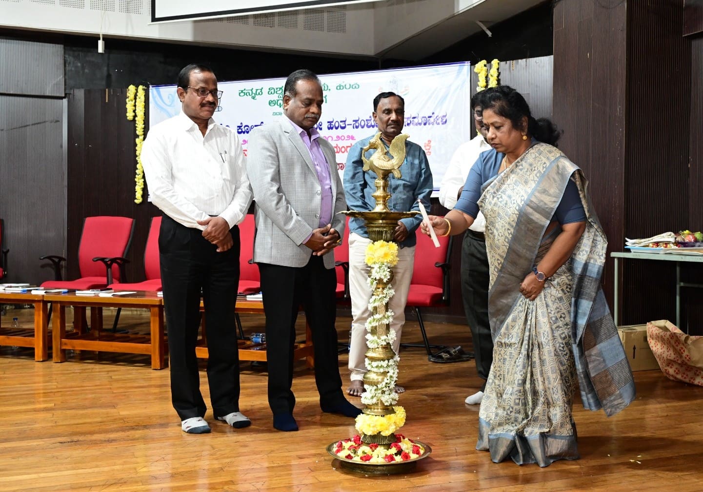 ಕನ್ನಡ ವಿಶ್ವವಿದ್ಯಾಲಯದ ಕುಲಪತಿ ಡಾ.ಡಿ.ವಿ. ಪರಮಶಿವಮೂರ್ತಿ ಅಧ್ಯಕ್ಷತೆ ವಹಿಸಿ ಮಾತನಾಡಿ, ಕನ್ನಡ ವಿಶ್ವವಿದ್ಯಾಲಯವು ಸಂಶೋಧಕರ ಮನಸ್ಸನ್ನು ತೀಕ್ಷ್ಣಗೊಳಿಸುವುದರ ಜೊತೆಗೆ ಅವರಿಗೆ ರೆಕ್ಕೆ-ಪುಕ್ಕಗಳನ್ನು ಕಟ್ಟುವ ಕಾರ್ಯ ಮಾಡುತ್ತಿದೆ. ಸಂಶೋಧನೆಯಲ್ಲಿ ಇರುವ ವಿಧಾನಾತ್ಮಕ ಕೊರತೆಗಳನ್ನು ಗುರುತಿಸಿ, ಅದಕ್ಕೆ ಪೂರಕ ಪರಿಹಾರಗಳನ್ನು ಕಂಡುಕೊಳ್ಳುವ ದಾರಿಯನ್ನು ವಿದ್ಯಾರ್ಥಿಗಳಿಗೆ ವಿಶ್ವವಿದ್ಯಾಲಯ ತೋರಿಸುತ್ತಿದೆ ಎಂದರು.ಕನ್ನಡ ವಿಶ್ವವಿದ್ಯಾಲಯದ ಅಧ್ಯಯನಾಂಗ ನಿರ್ದೇಶಕ ಡಾ.ಅಮರೇಶ ಯತಗಲ್ ಪ್ರಾಸ್ತಾವಿಕವಾಗಿ ಮಾತನಾಡಿದರು.