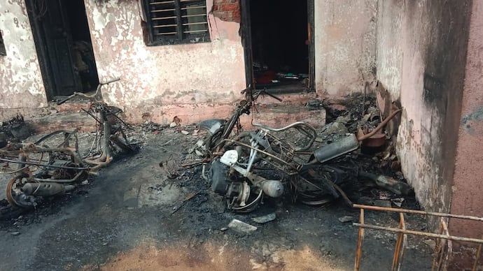 ಭಾನುವಾರ ಬೆಳಗಿನ ಜಾವ ಸಿಲಿಂಡರ್ ಸೋರಿಕೆಯಾಗಿ ಸ್ಫೋಟ ಸಂಭವಿಸಿದೆ. ಸ್ಫೋಟದ ತೀವ್ರತೆಗೆ ಮನೆ ಸಂಪೂರ್ಣ ನಾಶವಾಗಿದ್ದು, ಮನೆಯ ಅಕ್ಕಪಕ್ಕ ನಿಲ್ಲಿಸಿದ್ದ ವಾಹನಗಳೂ ಬೆಂಕಿಗೆ ಆಹುತಿಯಾಗಿವೆ.