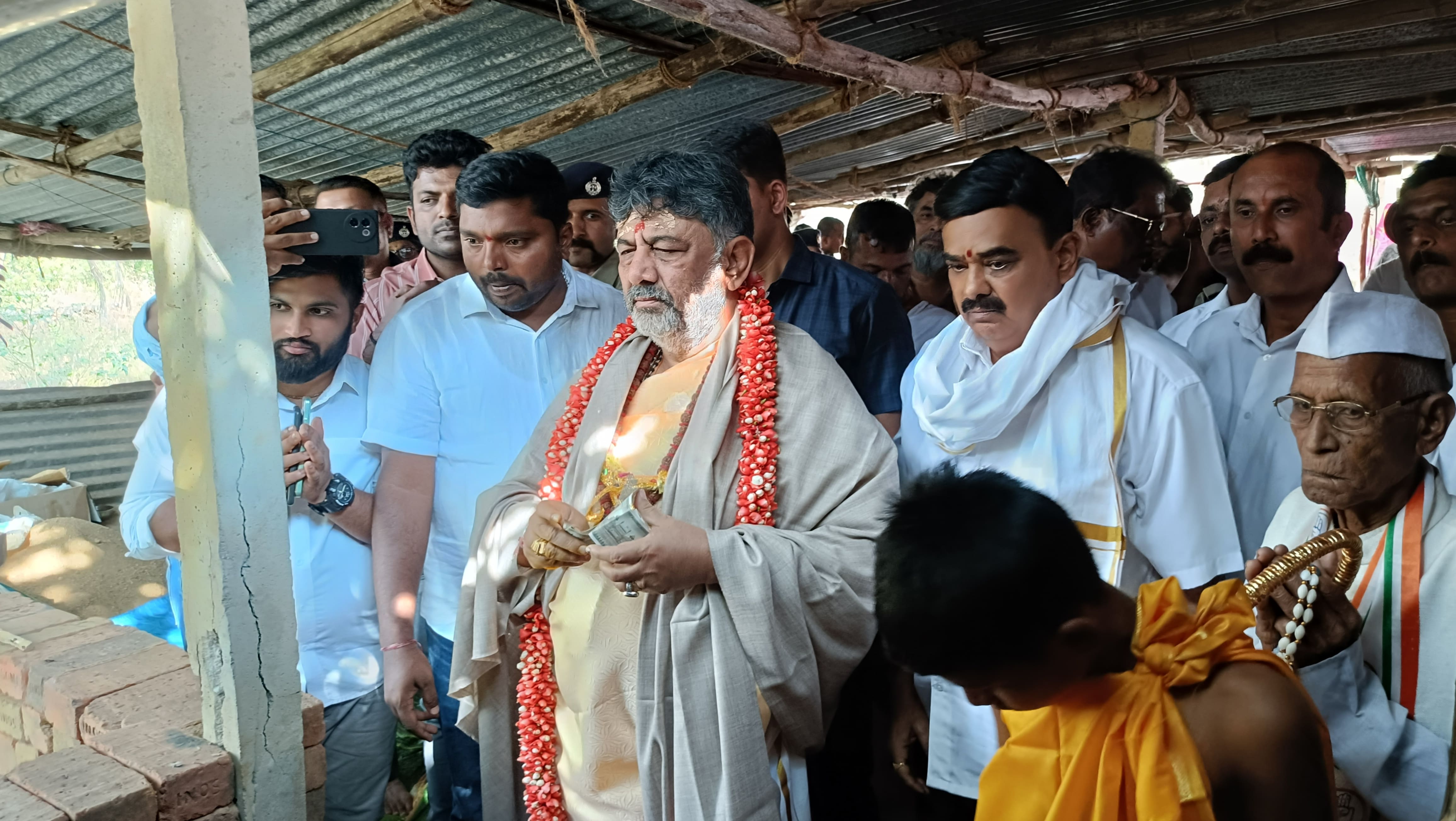 ಅಂಕೋಲಾ: ಉಪ ಮುಖ್ಯಮಂತ್ರಿ ಡಿ.ಕೆ. ಶಿವಕುಮಾರ ಅವರು ಶುಕ್ರವಾರ ತಾಲೂಕಿನ ಆಂದ್ಲೆಯ ಶ್ರೀ ಜಗದೇಶ್ವರಿ ದೇವಸ್ಥಾನಕ್ಕೆ ತೆರಳಿ ಸಂಕಷ್ಟಹರಣ ಹಾಗೂ ಇಷ್ಟಾರ್ಥಸಿದ್ಧಿ ಕಾಳರಾತ್ರಿ ಎಳ್ಳು ಅಮಾವಾಸ್ಯೆ ಮಾಲೆ ಪೂಜೆಯಲ್ಲಿ ಪಾಲ್ಗೊಂಡು ಧನ್ಯತೆ ಮರೆದರು.ಶುಕ್ರವಾರ ಬೆಳಗ್ಗೆ 8.30ಕ್ಕೆ ದೇವಸ್ಥಾನಕ್ಕೆ ಆಗಮಿಸಿ ಪೂಜೆ ಸಲ್ಲಿಸುವ ಬಗ್ಗೆ ಅಧಿಕೃತ ಸಂದೇಶ ಜಿಲ್ಲಾಡಳಿತ ಹಾಗೂ ಪೊಲೀಸ್ ಇಲಾಖೆಗೆ ವರದಿ ರವಾನೆಯಾಗಿತ್ತು. ಆದರೆ ಶಿವಕುಮಾರ ಅವರು ಬಂದಿದ್ದು ಮಾತ್ರ ಮಧ್ಯಾಹ್ನ 1 ಗಂಟೆಗೆ. ಸುಮಾರು ಒಂದೂವರೆ ಗಂಟೆಗಳ ಕಾಲ ಶಿವಕುಮಾರ ಅವರು ಪೂಜಾ ಕೈಂಕರ್ಯದಲ್ಲಿ ಭಾಗಿಯಾದರು.