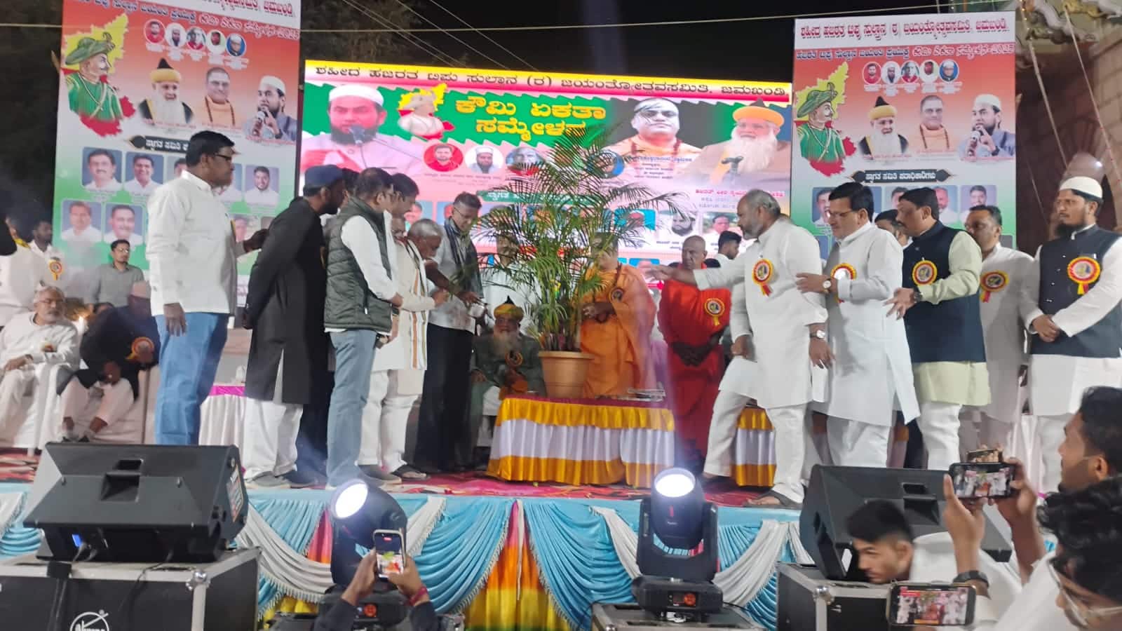 ಮಾಜಿ ಶಾಸಕ ಆನಂದ ನ್ಯಾಮಗೌಡ ಮಾತನಾಡಿ ನರೇಗಾ ಯೋಜನೆಯಲ್ಲಿದ್ದ ಮಹತ್ಮ ಗಾಂಧಿ ಅವರ ಹೆಸರನ್ನು ತೆಗೆಯುವ ಕೆಲಸ ಮಾಡಿದ್ದಾರೆ. ಆದರೆ ದೇಶದ ಜನರ ಮನಸ್ಸಿನಲ್ಲಿರುವ ಅವರ ಚಿಂತನೆ ತೆಗೆಯಲು ಸಾಧ್ಯವಿಲ್ಲ. ಕಾಂಗ್ರೆಸ್ ದೇಶವನ್ನು ಸರ್ವಜನಾಂಗದ ಶಾಂತಿಯ ತೊಟ ಮಾಡಲು ಶ್ರಮಿಸುತ್ತಿದೆ, ಯಾರೂ ಭಯ ಪಡುವ ಅಗತ್ಯವಿಲ್ಲ ಎಂದರು.ಸಮಿತಿ ಅಧ್ಯಕ್ಷ ನಜೀರ್ ಕಂಗನೊಳ್ಳಿ ಸ್ವಾಗತಿಸಿ ಪ್ರಾಸ್ತಾವಿಕವಾಗಿ ಮಾತನಾಡಿದರು. ಉಪಾಧ್ಯಕ್ಷ ಡಾ. ತೌಫಿಕ್ ಪಾರ್ಥನಳ್ಳಿ ಮಾನಾಡಿದರು. ಬಿಹಾರದ ಮೌಲಾನಾ ಅಬ್ದುಲ್ಲಾಸಾಲೀಂಕಮರ ಚತುರ್ವೇದಿ, ಉತ್ತರ ಪ್ರದೇಶದ ಹಜರತ್ ಪೀರ್ ಸೈಯದ್ ಕಾಸಿಂ ಅಶ್ರಫ್, ಬಾಗಲಕೊಟೆಯ ಹಜರತ ಮೌಲಾನಾ ಮೊಹಸೀನ್ಅಹಮದ್, ಕಾರಿ ಸಮಿಉಲ್ಲಾ ಖಾದ್ರಿ ಮಾನತಾಡಿದರು. ಎಐಎಂಐಎಂ ಪಕ್ಷದ ರಾಜ್ಯಾಧ್ಯಕ್ಷ ಲತೀಫ್ ಖಾನ ಪಠಾಣ, ಓಲೆಮಠದ ಆನಂದ ದೇವರು, ರುದ್ರಾವಧೂತ ಮಠದ ಸಹಜಾನಂದ ಶ್ರೀಗಳು, ಅರ್ಬನ್ ಬ್ಯಾಂಕ್ ಅಧ್ಯಕ್ಷ ರಾಹುಲ್ ಕಲೂತಿ, ಸುಶೀಲ ಕುಮಾರ ಬೆಳಗಲಿ, ಡಾ. ರಾಜು ಗಸ್ತಿ, ರಿಯಾಜ ಅವಟಿ, ರಫಿಕ್ ಬಾರಿಗಡ್ಡಿ, ನಗರ ಯೋಜನಾ ಪ್ರಾಧಿಕಾರದ ಅಧ್ಯಕ್ಷ ಅನ್ವರ್ ಮೋಮಿನ್, ಈಶ್ವರ ವಾಳೆಣ್ಣವರ, ಕಾರ್ಯದರ್ಶಿ ಸಮೀರ್ ಇಲಾಹಿ ಕಂಗನೊಳ್ಳಿ, ಖಜಾಂಚಿ ಅಲ್ತಾಫ್ ಸಗರ, ಅಬ್ದುಲ್ಸಾಬ ಜಮಾದಾರ, ಅಬುಬಕರ ಕುಡಚಿ ಸೇರಿದಂತೆ ಸಮಿತಿ ಹಾಗೂ ಸಲಹಾ ಸಮಿತಿ ಸದಸ್ಯರು ವೇದಿಕೆಯಲ್ಲಿದ್ದರು.ದಲಿತರು, ಓಬಿಸಿಗಳು, ಮುಸ್ಲಿಮರು ಸೇರಿ ಶೇ.97 ಜನರಿದ್ದರೂ ಅಧಿಕಾರ ನಮ್ಮ ಬಳಿ ಇಲ್ಲವಾಗಿದೆ. ಅತ್ಯಂತ ಕಡಿಮೆ ಜನ ಸಂಖ್ಯೆಯ ಜನರು ನಮ್ಮನ್ನು ಆಳುತ್ತಿದ್ದಾರೆ. ಎಲ್ಲ ಹಿಂದುಳಿದ ಸಮಾಜಗಳು ಒಗ್ಗಟ್ಟಾಗಬೇಕು. ದೇಶವನ್ನು ಹಾಳು ಮಾಡಲು ಹೊರಟಿರುವ ಅಧಿಕಾರದಲ್ಲಿರುವವರ ವಿರುದ್ಧ ಒಗ್ಗಟ್ಟಾಗಬೇಕು. ಇವರನ್ನು ಯಹೂದಿಗಳು ಎಂದು ಸಂಬೋಧಿಸುತ್ತೇನೆ ಎಂದ ಅವರು, ರಾಜ್ಯದಲ್ಲಿ ಕೋಟಿ ಜನರಿರುವ ಮುಸ್ಲಿಮ ಸಮುದಾಯದ 30 ಶಾಸಕರಿರಬೇಕಿತ್ತು. ಬೆಂಗಳೂರಿನ ಅಂತಾರಾಷ್ಟ್ರೀಯ ವಿಮಾನ ನಿಲ್ದಾಣಕ್ಕೆ ಟಿಪ್ಪು ಸುಲ್ತಾನರ ಹೆಸರಿಡಬೇಕು. ನಟ ಶಾರೂಖ್ ಖಾನ್ ಟಿಪ್ಪು ಸುಲ್ತಾನರ ಸಿನಿಮಾ ಮಾಡಬೇಕು.