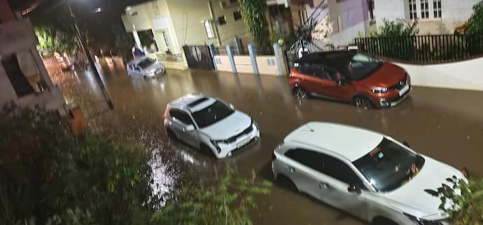 - - --9ಕೆಡಿವಿಜಿ3, 4: ದಾವಣಗೆರೆಯ ಸಿದ್ದವೀರಪ್ಪ ಬಡಾವಣೆಯಲ್ಲಿ ರಸ್ತೆಗಳು ಜಲಾವೃತವಾಗಿ, ವಾಹನಗಳು ಮುಳುಗಡೆಯಾಗಿರುವುದು.