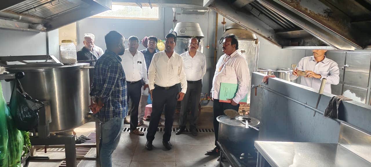 ಕ್ಯಾಂಟೀನ್ ಸಿಬ್ಬಂದಿ ಹಾಜರಾತಿ, ಕರ್ತವ್ಯ ನಿರ್ವಹಣೆ ಹಾಗೂ ಶಿಸ್ತು ಪಾಲನೆ ಕುರಿತು ಮಾಹಿತಿ ಪಡೆದರು. ಸಾರ್ವಜನಿಕರೊಂದಿಗೆ ಸಂವಾದ ನಡೆಸಿ ಸೇವೆಯ ಗುಣಮಟ್ಟದ ಕುರಿತು ಅಭಿಪ್ರಾಯಗಳನ್ನು ಸ್ವೀಕರಿಸಿದರು.ನಂತರ ಆಹಾರದ ಗುಣಮಟ್ಟ ಮತ್ತು ಸ್ವಚ್ಛತೆಯನ್ನು ನಿರಂತರವಾಗಿ ಕಾಪಾಡುವುದು, ಸಾರ್ವಜನಿಕರಿಗೆ ಸಕಾಲಿಕ ಹಾಗೂ ಸಮರ್ಪಕ ಆಹಾರ ಒದಗಿಸುವುದು ಮತ್ತು ಸರ್ಕಾರದ ಮಾರ್ಗಸೂಚಿಗಳನ್ನು ಕಟ್ಟುನಿಟ್ಟಾಗಿ ಪಾಲಿಸುವಂತೆ ಸಂಬಂಧಿಸಿದ ಅಧಿಕಾರಿಗಳು ಹಾಗೂ ಸಿಬ್ಬಂದಿಗೆ ಜಿಲ್ಲಾಧಿಕಾರಿಗಳು ನಿರ್ದೇಶನ ನೀಡಿದರು.