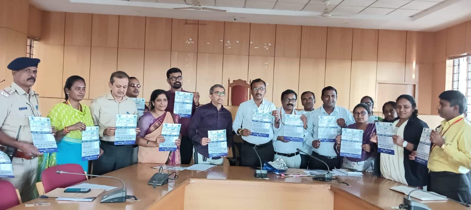 ರಾಮನಗರದ ಜಿಲ್ಲಾಧಿಕಾರಿಗಳ ಕಚೇರಿ ಸಭಾಂಗಣದಲ್ಲಿ ಜಿಲ್ಲಾ ಸಮನ್ವಯ ಸಮಿತಿ 2ನೇ ತ್ರೈಮಾಸಿಕ ಪ್ರಗತಿ ಪರಿಶೀಲನಾ ಸಭೆಯಲ್ಲಿ ಅಪರ ಜಿಲ್ಲಾಧಿಕಾರಿ ಚಂದ್ರಯ್ಯ ಕರಪತ್ರ ಬಿಡುಗಡೆ ಮಾಡಿದರು.