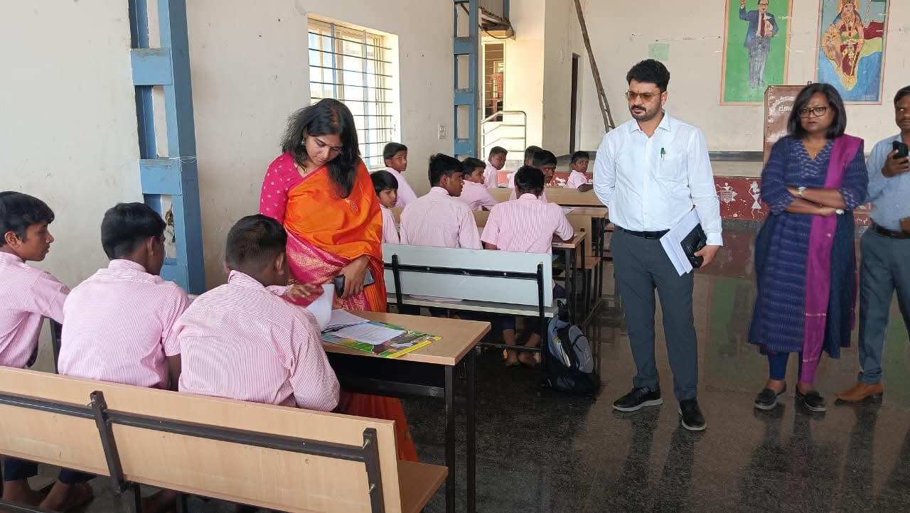 ತಾಲೂಕಿನ ಹೊಳವನಹಳ್ಳಿ ಹೋಬಳಿ ಬೈಚಾಪುರದಲ್ಲಿರುವ ಮುರಾರ್ಜಿ ದೇಸಾಯಿ ವಸತಿ ಶಾಲೆಗೆ ಭೇಟಿ ನೀಡಿ ವಿದ್ಯಾರ್ಥಿಗಳೊಂದಿಗೆ ಸಂವಾದ ನಡೆಸಿ ಎಸ್ಎಸ್ಎಲ್ಸಿ ವಾರ್ಷಿಕ ಪರೀಕ್ಷೆಯಲ್ಲಿ ಉತ್ತಮವಾಗಿ ಅಂಕಗಳನ್ನು ಗಳಿಸುವ ನಿಟ್ಟಿನಲ್ಲಿ ಅಧ್ಯಯನ ನಡೆಸುವಂತೆ ವಿದ್ಯಾರ್ಥಿಗಳಿಗೆ ಆತ್ಮಸ್ಥೈರ್ಯವನ್ನು ತುಂಬಿದರು.