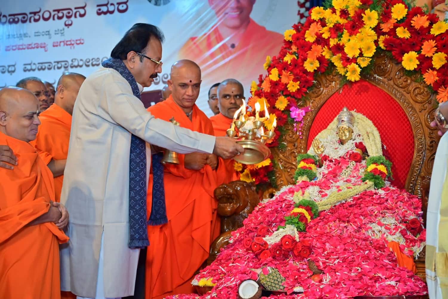 ಪಶು ವೈದ್ಯಕೀಯ ವಿಜ್ಞಾನ ಕಾಲೇಜು ಸ್ಥಾಪಿಸಲು 100 ಎಕರೆ ಭೂಮಿ ಸಿದ್ದವಿದೆ ಎಂದು ನಿರ್ಮಲಾನಂದನಾಥಶ್ರೀಗಳು ಹೇಳಿದ್ದಾರೆ. ಈ ಹಿನ್ನೆಲೆಯಲ್ಲಿ ಸಿಎಂ, ಡಿಸಿಎಂ ಮತ್ತು ಪಶು ಸಂಗೋಪನಾ ಸಚಿವರಲ್ಲಿ ಮನವಿ ಮಾಡಿ ಶ್ರೀಗಳ ಮಾರ್ಗದರ್ಶದಲ್ಲಿ ಆದಷ್ಟು ಬೇಗ ಜಿಲ್ಲೆಯಲ್ಲಿ ಕಾಲೇಜು ಸ್ಥಾಪಿಸಲಾಗುವುದೆಂದು ಇಂದು ಭರವಸೆ ನೀಡುತ್ತಿದ್ದೇನೆ ಎಂದರು.ಕೃಷಿ ಮಾಡುವ ರೈತರು ಮತ್ತು ಜನಪದ ಕಲಾವಿದರನ್ನು ಬಹಳ ಪ್ರೀತಿಸುತ್ತಿದ್ದ ಭೈರವೈಕ್ಯ ಶ್ರೀಗಳು ರೈತರ ಅನುಕೂಲಕ್ಕಾಗಿ ಕೃಷಿ ವಿಜ್ಞಾನ ಕಾಲೇಜು ಸ್ಥಾಪಿಸಬೇಕೆಂದು ಕನಸು ಕಂಡಿದ್ದರು. ರಾಜ್ಯದಲ್ಲಿ ಈವರೆಗೂ ಖಾಸಗಿ ಸಂಸ್ಥೆಗಳಿಗೆ ಕೃಷಿ ವಿಜ್ಞಾನ ಕಾಲೇಜು ಮಂಜೂರು ಮಾಡಿರುವ ಉದಾಹರಣೆಯಿಲ್ಲ. ಆದರೂ ಭೈರವೈಕ್ಯ ಶ್ರೀಗಳ ಕನಸನ್ನು ನನಸು ಮಾಡುವ ಉದ್ದೇಶದಿಂದ ನಾನು ಕೃಷಿ ಸಚಿವನಾದ ನಂತರ ಆದಿಚುಂಚನಗಿರಿ ಶಿಕ್ಷಣ ಸಂಸ್ಥೆಗೆ ಕೃಷಿ ವಿಜ್ಞಾನ ಕಾಲೇಜಿನ ಬೇಡಿಕೆ ಇಟ್ಟಾಗ ಸಿಎಂ ಸಿದ್ದರಾಮಯ್ಯ, ಡಿಸಿಎಂ ಡಿ.ಕೆ.ಶಿವಕುಮಾರ್ ಅವರು ಬಹಳ ಖುಷಿಯಿಂದ ಒಪ್ಪಿಗೆ ನೀಡಿದರು. ಶ್ರೀಗಳ ಆಶಯದಂತೆ ಕೃಷಿ ವಿಜ್ಞಾನ ಕಾಲೇಜು ಮಂಜೂರಾಗಿ ಎರಡು ವರ್ಷದಿಂದ ಕಾರ್ಯಾರಂಭ ಮಾಡುತ್ತಿದೆ ಎಂದರು.