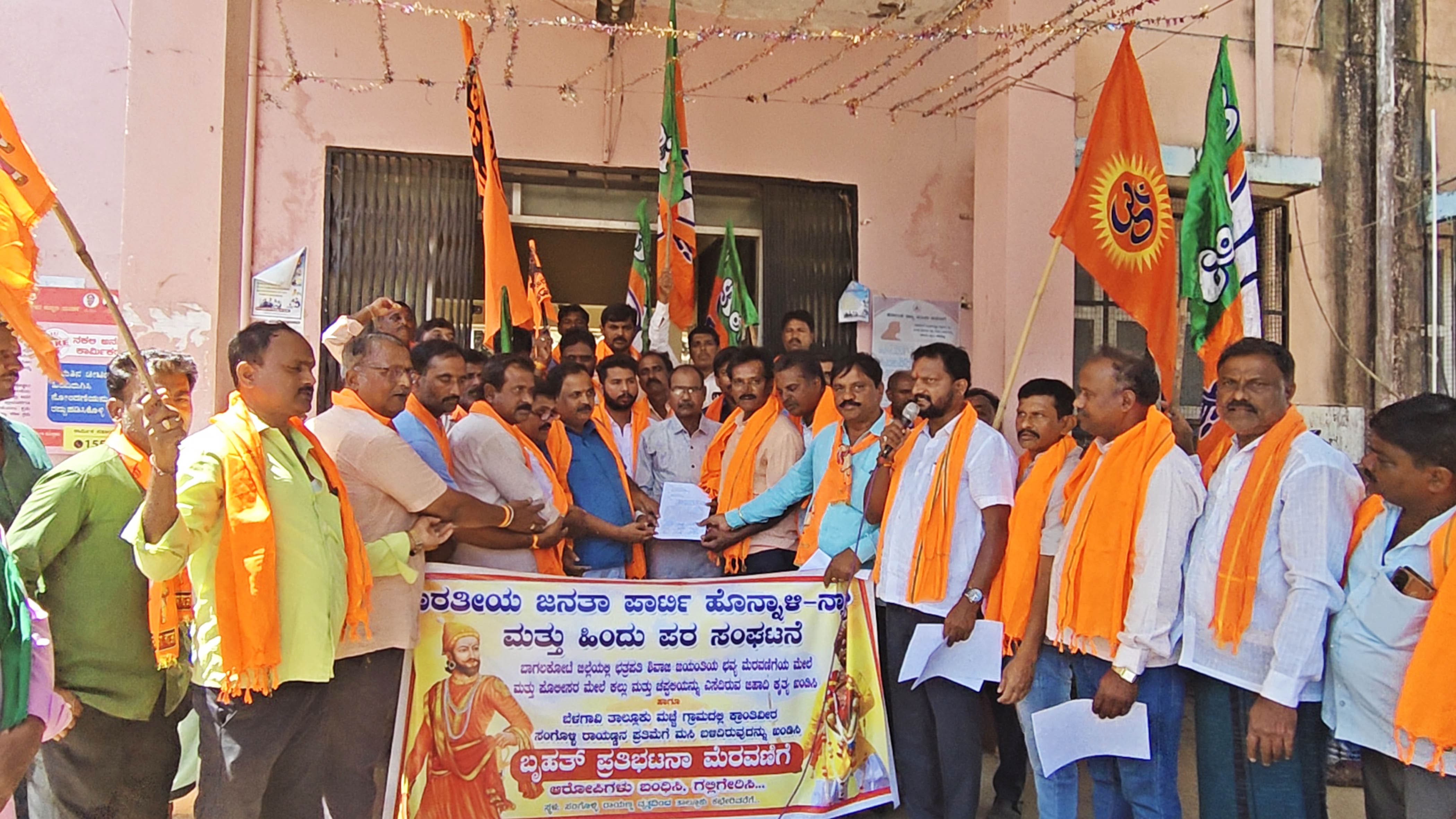 ಛತ್ರಪತಿ ಶಿವಾಜಿ ಮೆರವಣಿಗೆ ಮೇಲೆ ಕಲ್ಲು ತೋರಾಟ ಹಾಗೂ ಸಂಗೊಳ್ಳಿ ರಾಯಣ್ಣ ಪ್ರತಿಮೆ ವಿರೋಪಗೊಳಿಸಿದ ಘಟನೆ ಘಟನೆಗಳನ್ನು ಖಂಡಿಸಿ ಹಾಗೂ ಆರೋಪಿಗಳ ವಿರುದ್ದ ಕ್ರಮ ಜರುಗಿಸಬೇಕೆಂದು ಪ್ರತಿಭಟನೆ ನಡೆಸಿನಂತರ ಗ್ರೇಡ್-2 ತಹಸೀಲ್ದಾರ್ ಸುರೇಶ್ಅವರಿಗೆ ಬಿಜೆಪಿ ಮುಖಂಡರು ಮನವಿ ಸಲ್ಲಿಸಿದರು.