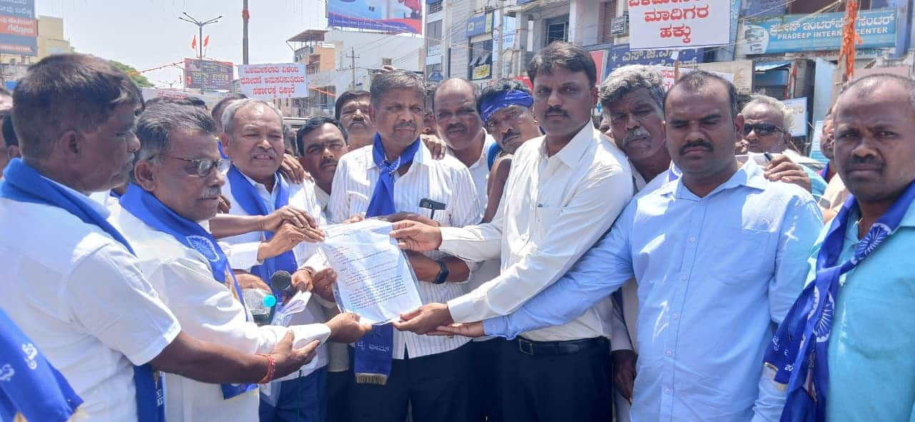ಮುಖಂಡ ಜಯಕುಮಾರ್ ಮಾತನಾಡಿ, ಸಾಮಾಜಿಕ ನ್ಯಾಯವು ಕೇವಲ ಘೋಷಣೆಯ ಮಾತಲ್ಲ; ಅದು ಸಂವಿಧಾನಬದ್ಧ ಹಕ್ಕು , ಸರ್ಕಾರಗಳು ನಮ್ಮ ನ್ಯಾಯಯುತ ಬೇಡಿಕೆಗಳಿಗೆ ತಕ್ಷಣ ಸ್ಪಂದಿಸದಿದ್ದರೆ ರಾಜ್ಯಾದ್ಯಂತ ಮಾದಿಗ ಸಮುದಾಯವು ಸಂಘಟಿತವಾಗಿ ತೀವ್ರ ಹೋರಾಟ ನಡೆಸಬೇಕಾದ ಅನಿವಾರ್ಯತೆ ಉಂಟಾಗುತ್ತದೆ. ಇಂದು ನಡೆಸಿರುವ ಪ್ರತಿಭಟನೆ ಸರ್ಕಾರಕ್ಕೆ ಎಚ್ಚರಿಕೆಯ ಸಂದೇಶವಾಗಿದೆ ಎಂದು ತಿಳಿಸಿದರು.ಪ್ರತಿಭಟನೆಯ ಬಳಿಕ ಪ್ರತಿಭಟನಾಕಾರರು ತಹಸೀಲ್ದಾರ್ ಎಂ.ಜೆ. ಸಂತೋಷ್ ಕುಮಾರ್ ಅವರ ಮೂಲಕ ಸರ್ಕಾರಕ್ಕೆ ಮನವಿ ಪತ್ರ ಸಲ್ಲಿಸಿದರು. ಈ ಸಂದರ್ಭದಲ್ಲಿ ಮುಖಂಡ ಎಂ. ಎನ್. ಶೇಖರಪ್ಪ ಸೇರಿದಂತೆ ಹಲವು ಮುಖಂಡರು ಮಾತನಾಡಿದರು.