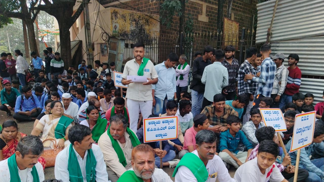 ಕಬ್ಬಿಗೆ ಎಫ್ಆರ್ಪಿ ದರ ನಿಗದಿ ಮಾಡಬೇಕು. ಕೆಪಿಟಿಸಿಎಲ್ ಹುದ್ದೆಗಳಿಗೆ ಎಸ್ಸೆಸ್ಸೆಲ್ಸಿ ವಿದ್ಯಾರ್ಹತೆ ತೆಗೆದು ಐಟಿಐ ಪಾಸಾದವರಿಗೆ ಮಾತ್ರ ಅವಕಾಶ ನೀಡಬೇಕು ಸೇರಿ ವಿವಿಧ ಬೇಡಿಕೆ ಈಡೇರಿಕೆಗೆ ಆಗ್ರಹಿಸಿ ನೇಗಿಲಯೋಗಿ ರೈತ ಸೇವಾ ಸಂಘದ ನೇತೃತ್ವದಲ್ಲಿ ರೈತರು, ಐಟಿಐ ವಿದ್ಯಾರ್ಥಿಗಳು ನಗರದಲ್ಲಿ ಸೋಮವಾರ ಪ್ರತಿಭಟನೆ ಮಾಡಿದರು.ಜಿಲ್ಲಾಧಿಕಾರಿ ಕಚೇರಿ ಎದುರು ಪ್ರತಿಭಟನೆ ನಡೆಸಿದ ಪ್ರತಿಭಟನಾಕಾರರು ಜಿಲ್ಲಾಧಿಕಾರಿಗೆ ಮನವಿ ಸಲ್ಲಿಸಿದರು. ಕೆಪಿಟಿಸಿಎಲ್ನಲ್ಲಿ ಕಿರಿಯ ಸ್ಟೇಷನ್ ಪರಿಚಾರಕ ಮತ್ತು ಕಿರಿಯ ಪವರ್ ಮ್ಯಾನ್ ಹುದ್ದೆಗಳಿಗೆ ಅರ್ಜಿ ಕರೆಯಲಾಗಿದೆ. ಆದರೆ, ವಿದ್ಯಾರ್ಹತೆ ಎಸ್ಸೆಸ್ಸೆಲ್ಸಿ ನಿಗದಿಪಡಿಸಲಾಗಿದೆ. ಇದರಿಂದ ಐಟಿಐ ವ್ಯಾಸಂಗ ಮಾಡಿರುವ ವಿದ್ಯಾರ್ಥಿಗಳಿಗೆ ಅನ್ಯಾಯವಾಗಲಿದೆ. ಎಸ್ಸೆಸ್ಸೆಲ್ಸಿ ಶಿಕ್ಷಣ ಪಡೆದ ಅಭ್ಯರ್ಥಿಗಳಿಗೆ ಕೆಪಿಟಿಸಿಎಲ್ ಕಂಪನಿ ಬಗ್ಗೆಯಾಗಲಿ, ವಿದ್ಯುತ್ ಕುರಿತಾಗಲಿ ಯಾವುದೇ ಮಾಹಿತಿ ಇರುವುದಿಲ್ಲ. ಇದಕ್ಕೆ ಐಟಿಐ ವ್ಯಾಸಂಗ ಮಾಡಿರುವ ಅಭ್ಯರ್ಥಿಗಳಿಗೆ ಅವಕಾಶ ನೀಡಬೇಕು ಎಂದು ಆಗ್ರಹಿಸಿದರು.