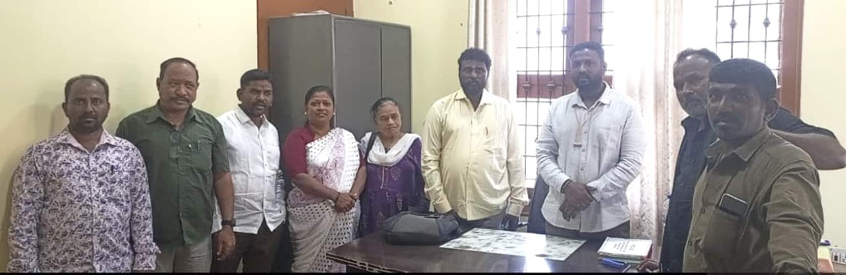 ಹೊಸಪೇಟೆಯ ಕೊಳಗೇರಿ ಮಂಡಳಿ ಕಚೇರಿ ಅಧಿಕಾರಿ ಶಿವಕುಮಾರ್ ಅವರನ್ನು ಸ್ಲಂ ಜನರ ಸಂಘಟನೆ- ಕರ್ನಾಟಕದ ಪದಾಧಿಕಾರಿಗಳು ಹಾಗೂ ಸದಸ್ಯರು ಸ್ಲಂ ನಿವಾಸಿಗಳಿಗೆ ಹಕ್ಕುಪತ್ರಗಳ ವಿತರಣೆಗೆ ಶುಕ್ರವಾರ ಒತ್ತಾಯಿಸಿದರು.