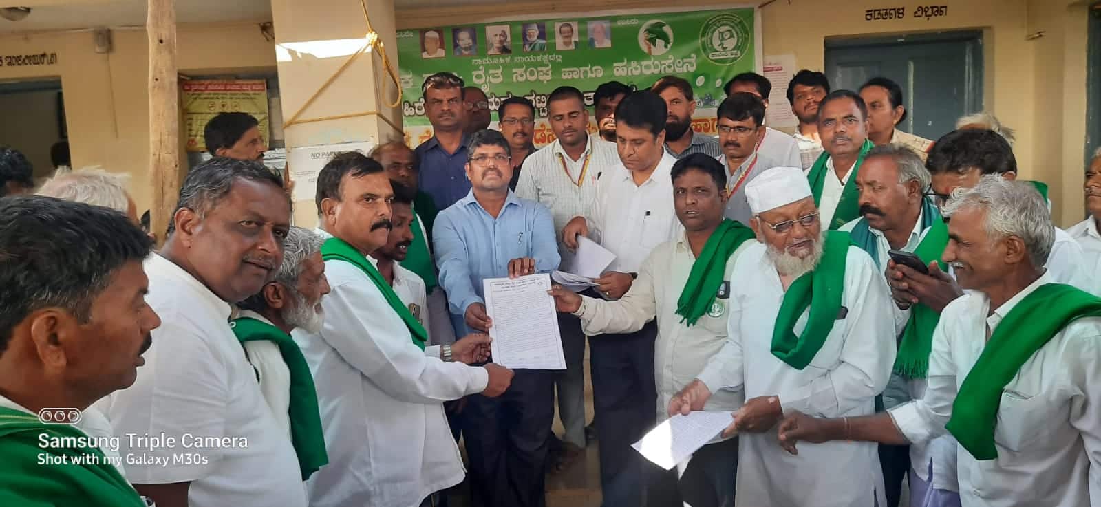 ರೈತರ ವಿವಿಧ ಬೇಡಿಕೆಗಳ ಈಡೇರಿಸಬೇಕೆಂದು ಒತ್ತಾಯಿಸಿ ಕರ್ನಾಟಕ ರಾಜ್ಯ ರೈತ ಸಂಘ ಹಾಗೂ ಹಸಿರುಸೇನೆಯ ಘಟಕದಿಂದ ಪಟ್ಟಣದ ಹೆಸ್ಕಾಂ ಕಚೇರಿ ಎದುರು ಸೋಮವಾರ ಪ್ರತಿಭಟನೆ ನೆಡಸಿ ಮನವಿ ಸಲ್ಲಿಸಲಾಯಿತು.