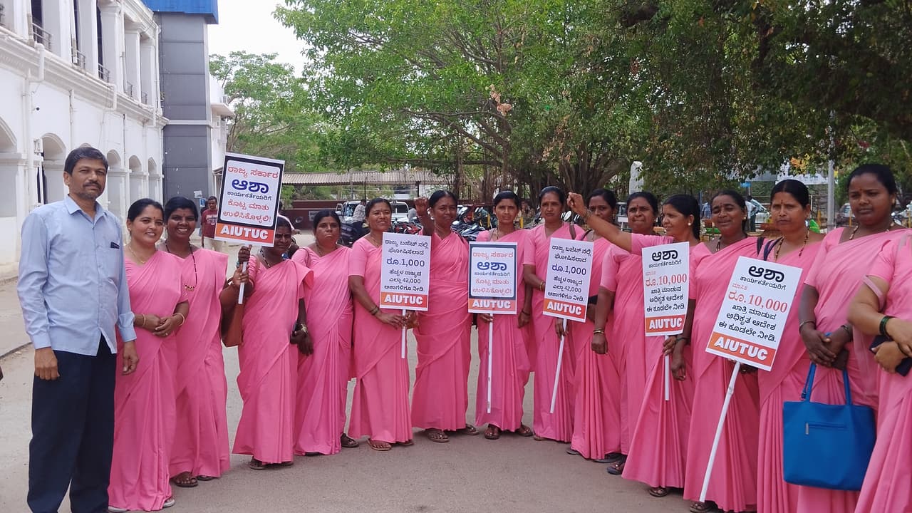 ಮಾಸಿಕ ಕನಿಷ್ಠ 10 ಸಾವಿರ ರು. ಗೌರವ ಧನ ನೀಡುವುದೂ ಸೇರಿದಂತೆ ವಿವಿಧ ಬೇಡಿಕೆಗಳ ಈಡೇರಿಕೆಗೆ ಆಗ್ರಹಿಸಿ ಆಶಾ ಕಾರ್ಯಕರ್ತೆಯರು ಎಐಯುಟಿಯುಸಿ ನೇತೃತ್ವದಲ್ಲಿ ಬುಧವಾರ ಚಿತ್ರದುರ್ಗದಲ್ಲಿ ಪ್ರತಿಭಟನೆ ನಡೆಸಿ ಜಿಲ್ಲಾಧಿಕಾರಿಗೆ ಮನವಿ ಸಲ್ಲಿಸಿದರು.ಪ್ರತಿಭಟನಾ ನಿರತರನ್ನುದ್ದೇಶಿಸಿ ಮಾತನಾಡಿದ ಸಂಘಟನೆಯ ವಿಜಯಕುಮಾರ್, ಕಳೆದ ಜನವರಿ 7 ರಿಂದ 10 ರವರೆಗೆ ಆಶಾ ಕಾರ್ಯಕರ್ತೆಯರು ಆಹೋರಾತ್ರಿ ಹೋರಾಟ ನಡೆಸಿದ್ದು, ಸಿಎಂ ಸಿದ್ದರಾಮಯ್ಯ ಅವರು ಆಶಾ ಕಾರ್ಯಕರ್ತೆಯರ ಕರೆಯಿಸಿ ಮಾತುಕತೆ ನಡೆಸಿದ್ದರು. ಆಶಾ ಕಾರ್ಯಕರ್ತೆಯರಿಗೆ ಏಪ್ರಿಲ್ ನಿಂದ ಮಾಸಿಕ 10 ಸಾವಿರ ಗೌರವ ಧನದ ಜೊತೆಗೆ ಕಾಂಪೋನೆಂಟ್ಗಳ ಹೆಚ್ಚುವರಿ ಕೆಲಸದ ಆಧಾರದ ಮೇಲೆ ಹೆಚ್ಚುವರಿ ಇನ್ಸೆಂಟಿವ್ ಕೂಡ ನೀಡಲಾಗುವುದು. ಒಂದು ವೇಳೆ ಯಾರಿಗಾದರೂ ಕಾಂಪೋನೆಂಟ್ಸ್ ಗಳಿಂದ ಕಡಿಮೆ ಮೊತ್ತದ ಪ್ರೋತ್ಸಾಹ ಧನ ಬಂದಿದ್ದಲ್ಲಿ, ಅಂತಹ ಆಶಾ ಕಾರ್ಯಕರ್ತೆಯರಿಗೆ, ಸರ್ಕಾರವೇ ವ್ಯತ್ಯಾಸದ ಹಣವನ್ನು ಪಾವತಿಸಿ, 10,000 ರು. ಗ್ಯಾರಂಟಿ ದೊರೆಯುವಂತೆ ಕ್ರಮಕೈಗೊಳ್ಳಲಾಗುವುದು ಎಂದಿದ್ದರು. ಮುಖ್ಯಮಂತ್ರಿಗಳು ನೀಡಿದ ಭರವಸೆ ಇನ್ನೂಜಾರಿಗೆ ಬಂದಿಲ್ಲ. ಈ ಸಂಬಂಧ ಸರ್ಕಾರ ಆದೇಶ ಹೊರಡಿಸಿಲ್ಲವೆಂದು ದೂರಿದರು.