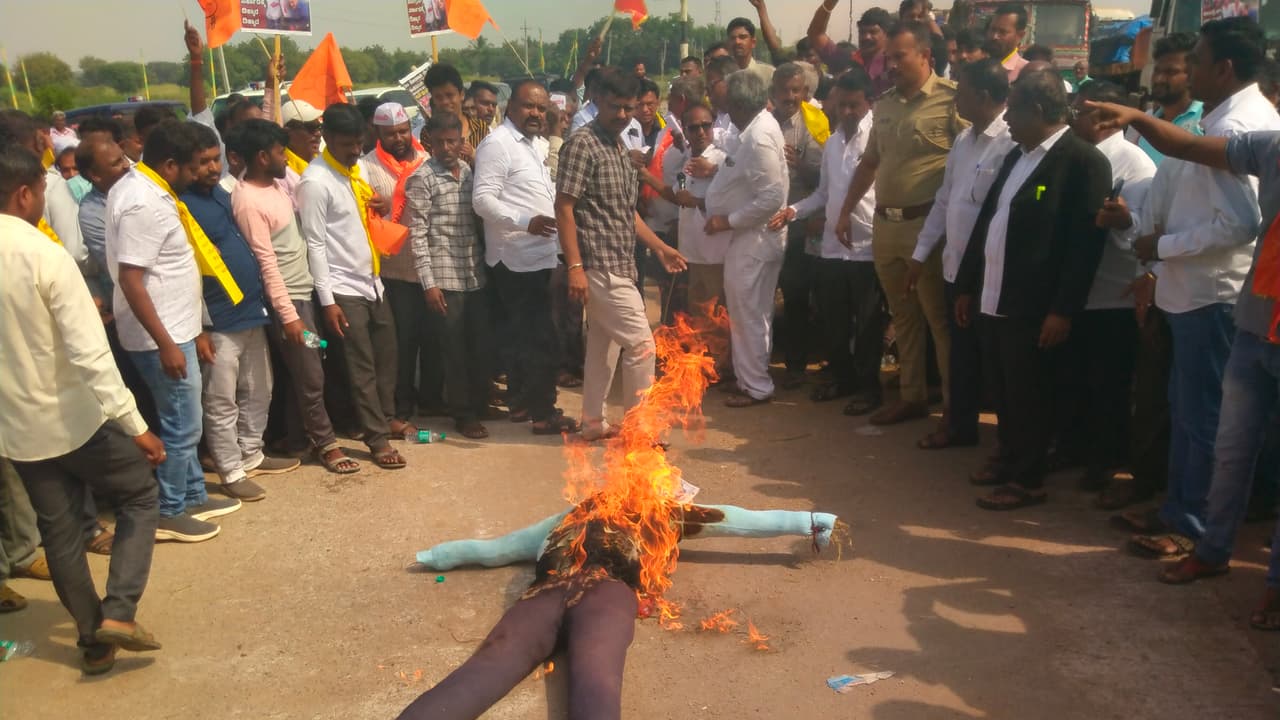 ತಾಲೂಕಿನ ತಳಕಲ್ಲ ಗ್ರಾಮದಲ್ಲಿ ರಾಷ್ಟ್ರೀಯ ಹೆದ್ದಾರಿ ತಡೆದು ಕುಕನೂರು, ಯಲಬುರ್ಗಾ ತಾಲೂಕಿನ ವೀರಶೈವ ಲಿಂಗಾಯತ ಪಂಚಮಸಾಲಿ ಸಮಾಜದವರು ಪ್ರತಿಭಟನೆ ನಡೆಸಿದರು. ನೂರಾರು ವಾಹನಗಳ ತಾಸೊತ್ತಿಗೂ ಹೆಚ್ಚು ಕಾಲ ರಸ್ತೆಯಲ್ಲಿಯೇ ನಿಂತಿದ್ದವು. ನಂತರ ತಹಸೀಲ್ದಾರ ಅವರಿಗೆ ಮೀಸಲಾತಿ ಜಾರಿಗೆ ಆಗ್ರಹಿಸಿ ಮನವಿ ಸಲ್ಲಿಸಿದರು. ಈ ವೇಳೆ ಸಿಎಂ ಸಿದ್ದರಾಮಯ್ಯ ಭಾವಚಿತ್ರ ಅಂಟಿಸಿರುವ ಪ್ರತಿಕೃತಿ ದಹಿಸಿ ಸಿಎಂ ಸಿದ್ದರಾಮಯ್ಯ ಹಾಗೂ ರಾಜ್ಯ ಕಾಂಗ್ರೆಸ್ ಸರ್ಕಾರದ ವಿರುದ್ಧ ಘೋಷಣೆ ಕೂಗಿದರು.ವೀರಶೈವ ಲಿಂಗಾಯತ ಪಂಚಮಸಾಲಿ ಸಮಾಜದ ಮೀಸಲಾತಿ ಹೋರಾಟ ಸಮಿತಿಯ ರಾಜ್ಯ ಉಪಾಧ್ಯಕ್ಷ ಬಸಲಿಂಗಪ್ಪ ಭೂತೆ ಮಾತನಾಡಿ, ಪಂಚಮಸಾಲಿ ಸಮಾಜದ ಮಕ್ಕಳ ಶೈಕ್ಷಣಿಕ ಅಭಿವೃದ್ಧಿಗೆ ಮೀಸಲಾತಿ ನೀಡಬೇಕು. ಕಳೆದ 30 ವರ್ಷದಿಂದ ಮೀಸಲಾತಿಗಾಗಿ ನಮ್ಮ ಸಮಾಜ ಧ್ವನಿ ಎತ್ತುತ್ತಾ ಬಂದಿದೆ. ಆದರೆ ಇದುವರೆಗೂ ಅದನ್ನು ಪರಿಗಣನೆಗೆ ತೆಗೆದುಕೊಳ್ಳದೆ ಮೂಗಿಗೆ ತುಪ್ಪ ಸವರುವ ಕಾರ್ಯ ಆಗುತ್ತಿದೆ. ನಾನಾ ಸಮಾಜಕ್ಕೆ ಮೀಸಲಾತಿ ನೀಡಿದ ಉದಾಹರಣೆಗಳಿವೆ. ಸಿದ್ದರಾಮಯ್ಯ ಸಹ ತಮ್ಮ ಸಮಾಜದ ಮೀಸಲಾತಿಗಾಗಿ ಸ್ವಯಂ ಪ್ರೇರಿತವಾಗಿ ಧ್ವನಿ ಎತ್ತಿದ್ದರು. ಆದರೆ ಪಂಚಮಸಾಲಿ ಸಮಾಜ 30 ವರ್ಷದಿಂದ ಮೀಸಲಾತಿ ಹೋರಾಟ ಮಾಡುತ್ತಾ ಬಂದಿದ್ದರೂ ಕಡೆಗಣನೆ ಮಾಡುವ ತಂತ್ರಗಾರಿಕೆ ಎದ್ದು ಕಾಣುತ್ತಿದೆ ಎಂದರು.