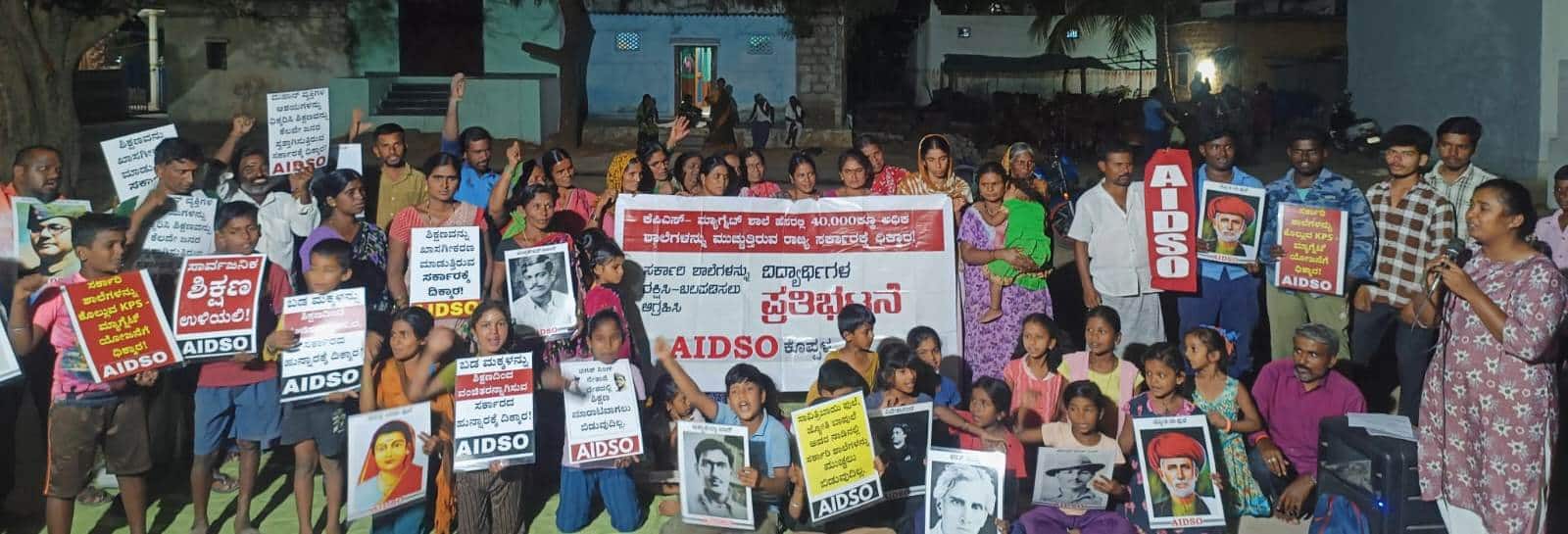 ಗಂಗಾವತಿ: ತಾಲೂಕಿನ ಗಡ್ಡಿ ಗ್ರಾಮದ ಸರ್ಕಾರಿ ಶಾಲೆ ಮುಚ್ಚಬಾರದು ಎಂದು ಆಗ್ರಹಿಸಿ ಹಾಗೂ ಕೆಪಿಎಸ್ ಮ್ಯಾಗ್ನೆಟ್ ಯೋಜನೆ ವಿರೋಧಿಸಿ ಗ್ರಾಮದ ಬಸವಣ್ಣನ ಗುಡಿ ಹತ್ತಿರ ಎಐಡಿಎಸ್ಒ ವಿದ್ಯಾರ್ಥಿ ಸಂಘಟನೆ ನೇತೃತ್ವದಲ್ಲಿ ವಿದ್ಯಾರ್ಥಿ,ಪೋಷಕರು ಪ್ರತಿಭಟನೆ ನಡೆಸಿದರು.