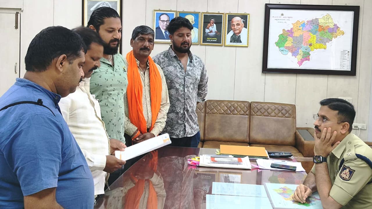 12 ಕೆಸಿಕೆಎಂ 5ಬಕ್ರೀದ್ ಮತ್ತಿತರ ಹಬ್ಬಗಳ ಸಂದರ್ಭದಲ್ಲಿ ಜಾನುವಾರು ಮತ್ತು ಇತರೆ ಪ್ರಾಣಿಗಳ ಹತ್ಯೆ ನಿಷೇಧಿಸ ಬೇಕೆಂದು ಆಗ್ರಹಿಸಿ ವಿಶ್ವ ಹಿಂದೂ ಪರಿಷತ್ ಮುಖಂಡರು ಜಿಲ್ಲಾ ಪೊಲೀಸ್ ವರಿಷ್ಟಾಧಿಕಾರಿ ಡಾ.ವಿಕ್ರಮ್ ಅಮಟೆಗೆ ಬುಧವಾರ ಮನವಿ ಸಲ್ಲಿಸಿದರು.