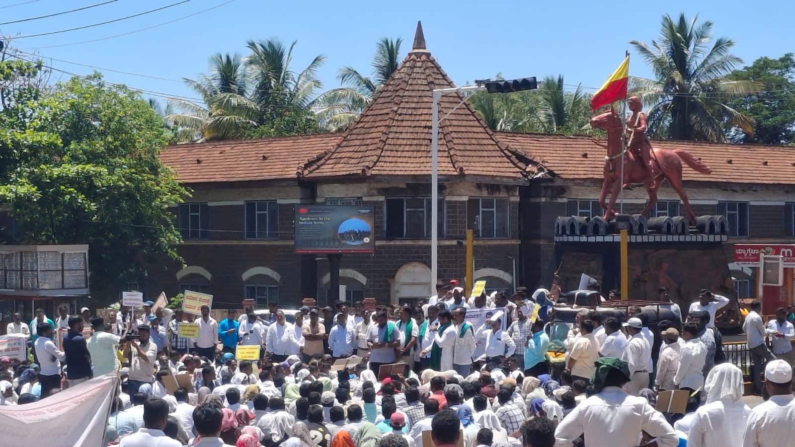 ಪರವಾನಗಿ ಭೂಮಾಪಕರನ್ನು ಕಾಯಂಗೊಳಿಸುವುದು ಸೇರಿದಂತೆ ಹಲವಾರು ಬೇಡಿಕೆ ಈಡೇರಿಸುವಂತೆ ಆಗ್ರಹಿಸಿ, ಅಖಿಲ ಕರ್ನಾಟಕ ಸರ್ಕಾರಿ ಪರವಾನಗಿ ಭೂಮಾಪಕರ ಸಂಘದಿಂದ ನಗರದ ಚನ್ನಮ್ಮ ವೃತ್ತದಲ್ಲಿ ಸೋಮವಾರ ಬೃಹತ್ ಪ್ರತಿಭಟನೆ ನಡೆಸಲಾಯಿತು. ಪ್ರತಿಭಟನೆ ಬಳಿಕ ಜಿಲ್ಲಾಡಳಿತದ ಮೂಲಕ ರಾಜ್ಯ ಸರ್ಕಾರಕ್ಕೆ ಮನವಿ ಸಲ್ಲಿಸಿದರು.ಚನ್ನಮ್ಮ ವೃತ್ತದಲ್ಲಿ ಜಮಾಯಿಸಿದ ಪ್ರತಿಭಟನಾಕಾರರು, ಕೆಲಕಾಲ ರಸ್ತೆ ತಡೆದು ಪ್ರತಿಭಟನೆ ನಡೆಸಿದರು. ಈ ಪ್ರತಿಭಟನೆಗೆ ವಿವಿಧ ರೈತ ಸಂಘಟನೆಗಳು ಸಾಥ್ ನೀಡಿದವು. ಬಳಿಕ ಅಲ್ಲಿಂದ ಬೃಹತ್ ಮೆರವಣಿಗೆ ಮೂಲಕ ಜಿಲ್ಲಾಧಿಕಾರಿ ಕಚೇರಿವರೆಗೆ ತೆರಳಿ ರಾಜ್ಯ ಸರ್ಕಾರದ ವಿರುದ್ಧ ಘೋಷಣೆ ಕೂಗಿ ಆಕ್ರೋಶ ವ್ಯಕ್ತಪಡಿಸಿದರು. ಪರವಾನಗಿ ಭೂಮಾಪಕರು ಸರ್ಕಾರಿ ಭೂಮಾಪಕರಂತೆಯೇ ಸಮಾನ ಕೆಲಸ ಕಾರ್ಯಗಳನ್ನು ನಿರ್ವಹಿಸುತ್ತ ಬಂದಿದ್ದೇವೆ. ಆದರೂ,
