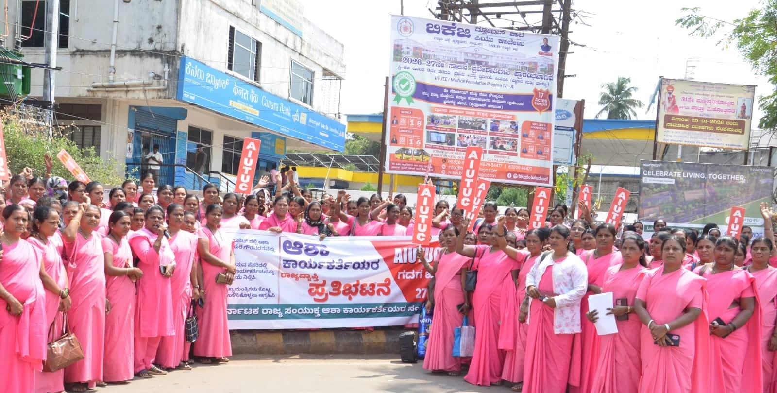 ಹಾಗೆಯೇ ಕೈಬಿಟ್ಟ ಆಶಾಗಳಿಗೆ ಹೊಸ ಗುತ್ತಿಗೆ ಗ್ರೂಪ್ ಡಿ ನೌಕರಿ ಕೆಲಸ ನೀಡುವುದಾಗಿ ತಿಳಿಸಲಾಗಿದೆ. ಆದರೆ ಬಹುತೇಕ ಆಶಾಗಳನ್ನು ಕೈಬಿಡುವ ಹುನ್ನಾರ ಆಗಿದೆ. ರಾಷ್ಟ್ರದ ಯಾವುದೇ ರಾಜ್ಯದಲ್ಲಿ ಇಲ್ಲದಿರುವುದು ನಮ್ಮ ರಾಜ್ಯದ ಆರೋಗ್ಯ ಇಲಾಖೆ ತರ್ಕಬದ್ಧಗೊಳಿಸುವ ಈ ಹುನ್ನಾರ ಆಶಾಗಳ ಆಕ್ರೋಶಕ್ಕೆ ಕಾರಣವಾಗಿದೆ. ಹಾಗೆಯೇ ಕಳೆದ ವರ್ಷ ಆಶಾ ಸುಗಮಕಾರರನ್ನು ಕೈಬಿಟ್ಟಿರುವುದು ಕೇಂದ್ರದ ಮಾರ್ಗಸೂಚಿಗೆ ವಿರುದ್ಧವಾಗಿದೆ ಎಂದು ಆಕ್ರೋಶ ವ್ಯಕ್ತಪಡಿಸಿದರು.ಕೇಂದ್ರ ಸರ್ಕಾರದ ಪ್ರೋತ್ಸಾಹಧನ ಹಾಗೂ ರಾಜ್ಯ ಸರ್ಕಾರದ ಗೌರವಧನ ಒಟ್ಟಿಗೆ ಸೇರಿಸಿ ಮಾಸಿಕ ₹15000 ಗೌರವಧನ ನೀಡಬೇಕು. ಆಶಾ ಕಾರ್ಯಕರ್ತೆಯರ ಗೌರವಧನವನ್ನು ₹5000ದಿಂದ ₹8000ಕ್ಕೆ ಹೆಚ್ಚಿಸಬೇಕು. ನಿವೃತ್ತ ಆಶಾಗಳಿಗೆ ಪಶ್ಚಿಮ ಬಂಗಾಳ ಮಾದರಿಯಲ್ಲಿ ಇಡಿಗಂಟು ನೀಡಬೇಕು ಎಂದರು.ತೀವ್ರತರ ರೋಗಗಳ ಚಿಕಿತ್ಸಾ ವೆಚ್ಚಕ್ಕಾಗಿ ಕಾರ್ಪಸ್ ಫಂಡ್ ಮಾಡಿ, ಚಿಕಿತ್ಸಾ ವೆಚ್ಚ ಮರುಪಾವತಿಗೆ ವ್ಯವಸ್ಥೆ ಮಾಡಬೇಕು. ಗಂಭೀರ ಕಾಯಿಲೆಗಳಿಂದ ಬಳಲುತ್ತಿರುವ ಆಶಾ ಕಾರ್ಯಕರ್ತೆಯರಿಗೆ ಚೇತರಿಕೆ ಅವಧಿಯಲ್ಲಿ(3 ತಿಂಗಳು) ಮಾಸಿಕ ನಿಶ್ಚಿತ ಗೌರವಧನವನ್ನು ಪಾವತಿ ಮಾಡುವುದು ಸೇರಿದಂತೆ ವಿವಿಧ ಬೇಡಿಕೆಗಳ ಈಡೇರಿಸುವಂತೆ ಒತ್ತಾಯಿಸಿದರು.