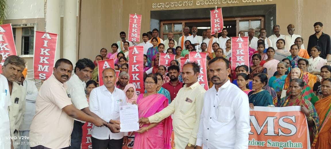 ವಿಬಿ ಜಿ ರಾಮ್ ಜಿ ವಾಪಸ್ ಪಡೆದು, ನರೇಗಾ ಯೋಜನೆಯನ್ನು ಪುನರ್ ಸ್ಥಾಪಿಸಿ, ಗ್ರಾಮೀಣ ಕೂಲಿ ಕಾರ್ಮಿಕರಿಗೆ ಉದ್ಯೋಗ ಖಾತ್ರಿಪಡಿಸಲು ಆಗ್ರಹಿಸಿ ಅಖಿಲ ಭಾರತ ರೈತ ಕೃಷಿಕಾರ್ಮಿಕರ ಸಂಘಟನೆ ಜಿಲ್ಲಾ ಘಟಕವು ಇಲ್ಲಿನ ಡಿಸಿ ಕಚೇರಿ ಮುಂದೆ ಪ್ರತಿಭಟನೆ ನಡೆಸಿತು.ಈ ವೇಳೆ ಮಾತನಾಡಿದ ಎಐಕೆಕೆಎಂಎಸ್ ಜಿಲ್ಲಾ ಅಧ್ಯಕ್ಷ ಶರಣಗೌಡ ಗೂಗಲ್, ಗ್ರಾಮೀಣ ಜನತೆಯ ಬದುಕಿಗೆ ಆಸರೆಯಾಗಿರುವ ನರೇಗಾ ಯೋಜನೆಯನ್ನು ರದ್ದುಗೊಳಿಸಿ, ಉದ್ಯೋಗ ಖಾತ್ರಿ ಇಲ್ಲದ ವಿಬಿ ಜಿ ರಾಮ್ ಜಿಯನ್ನು ಜಾರಿಗೊಳಿಸುತ್ತಿರುವುದು ಗ್ರಾಮೀಣ ಬದುಕನ್ನೇ ಸರ್ವನಾಶ ಮಾಡಿದಂತಾಗುತ್ತದೆ ಎಂದು ಕಳವಳ ವ್ಯಕ್ತಪಡಿಸಿದರು.