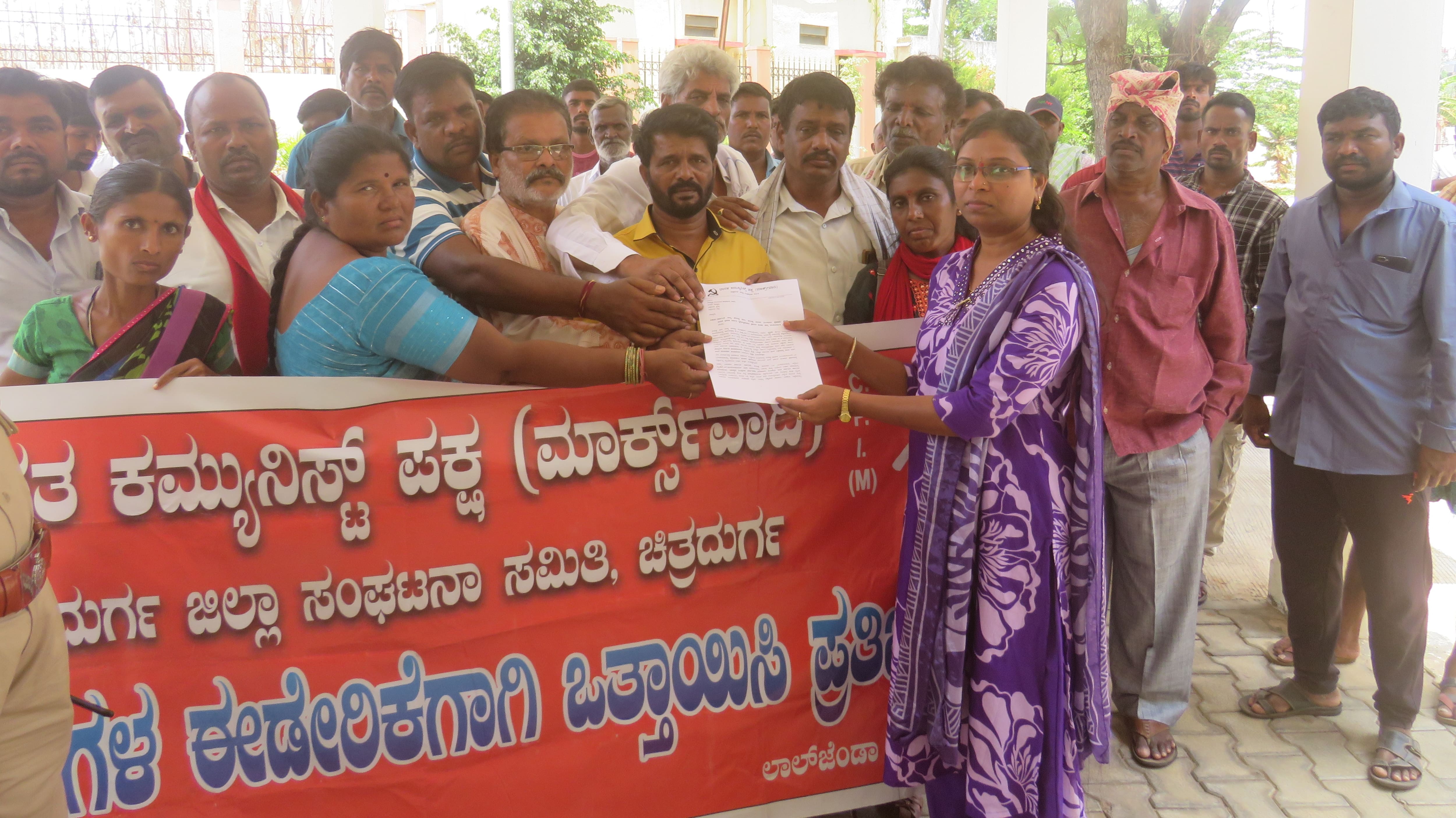 ಸಂಘಟನೆಯ ಡಿ.ಎಂ.ಮಲಿಯಪ್ಪ, ಟಿ.ತಿಪ್ಪೇಸ್ವಾಮಿ, ಟಿ.ನಿಂಗಣ್ಣ, ಎಚ್.ಒ.ನಾಗರಾಜ್, ಸಿ.ಕೆ.ಗೌಸ್ಪೀರ್, ನೇರ್ಲಹಳ್ಳಿ ನಾಗರಾಜ್, ಹೆಚ್.ಓ.ನಾಗರಾಜ್, ಶಿವಮ್ಮ, ವೆಂಕಟೇಶ್, ಪ್ರಭು ಕೆ.ನಾಗರಾಜ್, ಜಯಣ್ಣ ಪ್ರತಿಭಟನೆ ನೇತೃತ್ವ ವಹಿಸಿದ್ದರು.