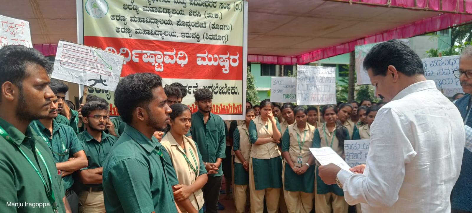 ಅರಣ್ಯ ಮಹಾವಿದ್ಯಾಲಯದ ವಿದ್ಯಾರ್ಥಿಗಳ ಅನಿರ್ದಿಷ್ಟಾವಧಿ ಧರಣಿ ಐದನೇ ದಿನಕ್ಕೆ