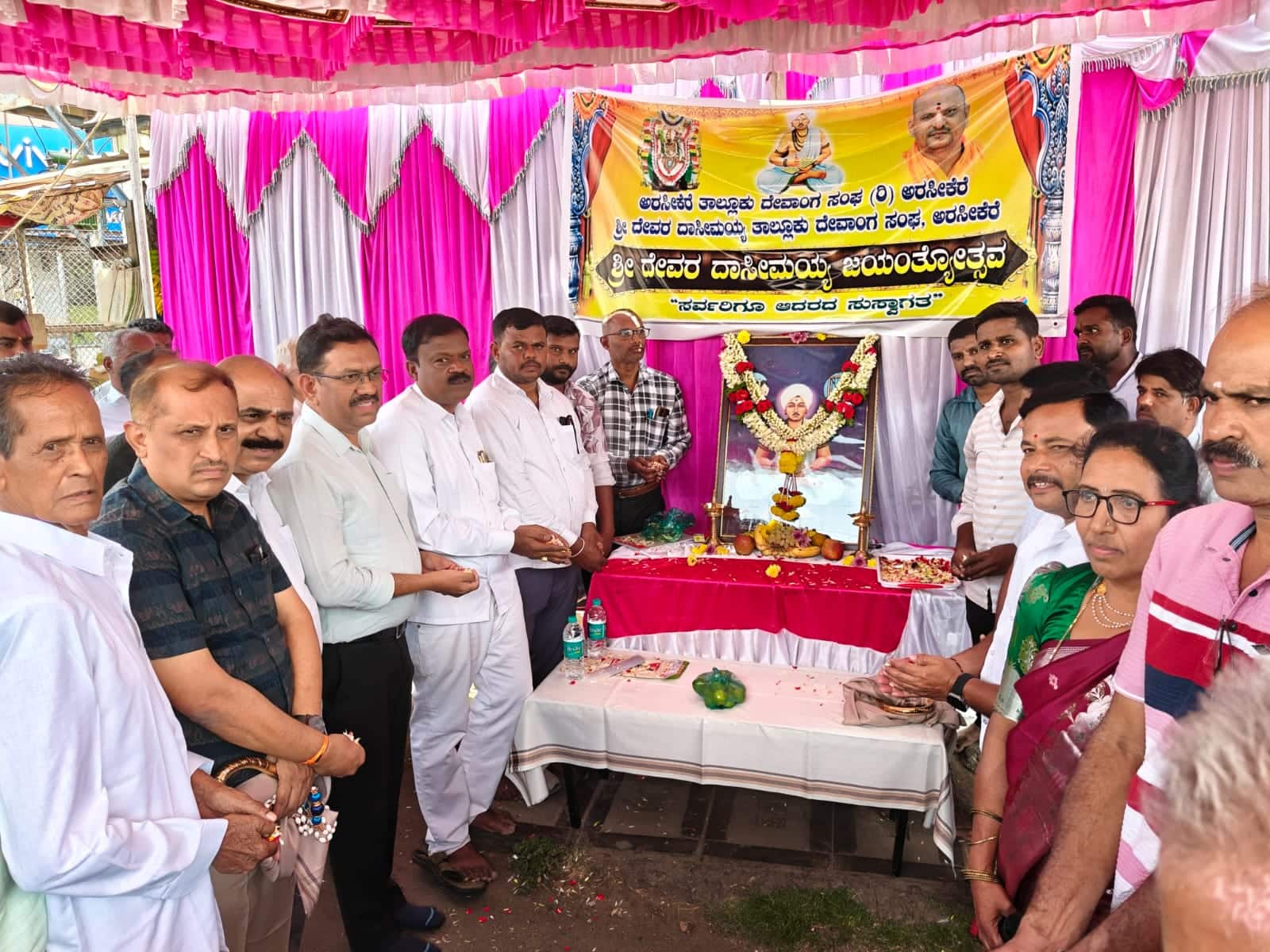 ದೇವರ ದಾಸಿಮಯ್ಯ ಸಹಕಾರ ಸಂಘದ ವತಿಯಿಂದ ನಗರದ ಪಿಪಿ ವೃತ್ತದಲ್ಲಿ ದೇವರ ದಾಸಿಮಯ್ಯ ಜಯಂತಿಯನ್ನು ಭಕ್ತಿಭಾವದಿಂದ ಹಾಗೂ ವೈಭವವಾಗಿ ಆಚರಿಸಲಾಯಿತು. ಕಾರ್ಯಕ್ರಮದಲ್ಲಿ ದೇವಾಂಗ ಸಮಾಜದ ನೂರಾರು ಮಂದಿ ಹಾಗೂ ವಿವಿಧ ಸಮಾಜದ ಮುಖಂಡರು ಭಾಗವಹಿಸಿ, ದೇವರ ದಾಸಿಮಯ್ಯ ಅವರ ಭಾವಚಿತ್ರಕ್ಕೆ ಪುಷ್ಪಾರ್ಚನೆ ಸಲ್ಲಿಸಿದರು.ಕಾರ್ಯಕ್ರಮದಲ್ಲಿ ವೈದ್ಯ ಡಾ. ಶಿವಕುಮಾರ್ ಮಾತನಾಡಿ, ದೇವರ ದಾಸಿಮಯ್ಯ ಅವರ ಉಪದೇಶಗಳು ಸಮಾಜದಲ್ಲಿ ಸಮಾನತೆ, ಶ್ರಮದ ಗೌರವ ಹಾಗೂ ಮಾನವೀಯ ಮೌಲ್ಯಗಳ ಸ್ಥಾಪನೆಗೆ ದಾರಿದೀಪವಾಗಿವೆ ಎಂದು ಹೇಳಿದರು. ದೇವಾಂಗ ಸಮಾಜವು ಸಂಖ್ಯೆಯಲ್ಲಿ ಸಣ್ಣದಾಗಿದ್ದರೂ, ಇತರ ಸಮಾಜಗಳೊಂದಿಗೆ ಸದಾ ಸೌಹಾರ್ದತೆಯಿಂದ ನಡೆದುಕೊಂಡು ಬಂದಿರುವುದು ಅದರ ದೊಡ್ಡ ಶಕ್ತಿ ಎಂದು ಅವರು ಅಭಿಪ್ರಾಯಪಟ್ಟರು.ದೇವರ ದಾಸಿಮಯ್ಯರು ತಮ್ಮ ಜೀವನದ ಮೂಲಕ “ಕಾಯಕವೇ ಕೈಲಾಸ” ಎಂಬ ಸಂದೇಶವನ್ನು ಸಾರಿದ್ದು, ದುಡಿಮೆ ಮತ್ತು ಪ್ರಾಮಾಣಿಕತೆಯೇ ಮನುಷ್ಯನನ್ನು ಉನ್ನತಿಗೆ ತರುತ್ತದೆ ಎಂದು ತೋರಿಸಿಕೊಟ್ಟಿದ್ದಾರೆ. ದೇವಾಂಗ ಸಮಾಜವು ತಮ್ಮ ಪರಂಪರಾಗತ ವೃತ್ತಿಯ ಜೊತೆಗೆ ಶಿಕ್ಷಣ ಮತ್ತು ಉದ್ಯೋಗ ಕ್ಷೇತ್ರಗಳಲ್ಲಿಯೂ ಮುಂದೆ ಬರಬೇಕಾಗಿದೆ. ಸಮಾಜದ ಯುವಕರು ಹೆಚ್ಚು ಸಂಘಟಿತರಾಗಿ, ಪರಸ್ಪರ ಸಹಕಾರದಿಂದ ಮುಂದುವರಿದರೆ ಮಾತ್ರ ರಾಜಕೀಯ, ಸಾಮಾಜಿಕ, ಶೈಕ್ಷಣಿಕ ಹಾಗೂ ಆರ್ಥಿಕವಾಗಿ ಬಲಿಷ್ಠರಾಗಲು ಸಾಧ್ಯವಾಗುತ್ತದೆ ಎಂದು ಸಲಹೆ ನೀಡಿದರು. ಸಮಾಜದ ಅಭಿವೃದ್ಧಿಗೆ ಏಕತೆ ಅತ್ಯಗತ್ಯವಾಗಿದ್ದು, ದೇವರ ದಾಸಿಮಯ್ಯರ ತತ್ವಗಳನ್ನು ಅನುಸರಿಸುವ ಮೂಲಕ ಒಗ್ಗಟ್ಟಿನ ಜೀವನ ನಡೆಸಿದರೆ ಸಮಾಜದ ಗೌರವ ಮತ್ತಷ್ಟು ಹೆಚ್ಚುತ್ತದೆ ಎಂದು ಹೇಳಿದರು. ಖ್ಯಾತ ವಕೀಲ ವಿವೇಕ್, ದೇವರ ದಾಸಿಮಯ್ಯ ಹಾಗೂ ಬಸವಾದಿ ಶರಣರ ವಚನಗಳಲ್ಲಿ ಅಡಕವಾಗಿರುವ ಸಂದೇಶಗಳು ಮನುಕುಲಕ್ಕೆ ದಾರಿದೀಪವಾಗಿವೆ, ವಚನಗಳನ್ನು ಕೇವಲ ಕೇಳುವುದರಿಂದ ಮಾತ್ರ ಪ್ರಯೋಜನವಿಲ್ಲ, ಅವುಗಳನ್ನು ಜೀವನದಲ್ಲಿ ಅಳವಡಿಸಿಕೊಂಡಾಗ ಮಾತ್ರ ಸಮಾಜದಲ್ಲಿ ಸಮಾನತೆ ಹಾಗೂ ಸೌಹಾರ್ದತೆ ನಿರ್ಮಾಣವಾಗುತ್ತದೆ ಎಂದು ತಿಳಿಸಿದರು. ತಾಲೂಕು ಒಕ್ಕಲಿಗರ ಸಮಾಜದ ಅಧ್ಯಕ್ಷ ಆರ್. ಅನಂತಕುಮಾರ್ ಮಾತನಾಡಿ, ನೇಕಾರರ ಜೀವನ ಇತ್ತೀಚಿನ ದಿನಗಳಲ್ಲಿ ಸಂಕಷ್ಟಕ್ಕೆ ಒಳಗಾಗುತ್ತಿರುವುದು ಆತಂಕಕಾರಿ ವಿಷಯವಾಗಿದ್ದು, ಅವರ ಹಿತಾಸಕ್ತಿಗಾಗಿ ಸರ್ಕಾರ ಸೂಕ್ತ ಕ್ರಮ ಕೈಗೊಳ್ಳಬೇಕು ಎಂದು ಮನವಿ ಮಾಡಿದರು.ಕಾರ್ಯಕ್ರಮದಲ್ಲಿ ನಗರಸಭೆ ಪೌರಾಯುಕ್ತ ಕೃಷ್ಣಮೂರ್ತಿ, ಉಪತಾಸಿಲ್ದಾರ್ ಶಿವಶಂಕರ್, ತಾಲೂಕು ದೇವಾಂಗ ಸಮಾಜದ ಅಧ್ಯಕ್ಷ ಗಿರಿಯಪ್ಪ, ದೇವರ ದಾಸಿಮಯ್ಯ ಸಹಕಾರ ಸಂಘದ ಅಧ್ಯಕ್ಷ ಪರಮೇಶ್, ಕಾರ್ಯದರ್ಶಿ ಕೋಳಗುಂದ ಸ್ವಭಾವ್, ತಾಲೂಕು ಕಾರ್ಯನಿರತ ಪತ್ರಕರ್ತರ ಸಂಘದ ಪ್ರಧಾನ ಕಾರ್ಯದರ್ಶಿ ಎಸ್.ವಿ. ನವೀನ್ ಕುಮಾರ್ ಸೇರಿದಂತೆ ಹಲವರು ಮಾತನಾಡಿದರು. ಸಮಾಜದ ಮುಖಂಡರಾದ ತಮ್ಮಯ್ಯ ಶೆಟ್ಟಿ, ಮಹೇಂದ್ರ ಕುಮಾರ್, ರೈಲ್ವೆ ರಂಗಣ್ಣ, ಯಳವಾರೆ ರಂಗನಾಥ್, ಕುರುವಂಕ ಸಂತೋಷ್, ಶೇಖರ ಸೇರಿದಂತೆ ಹಲವರು ಉಪಸ್ಥಿತರಿದ್ದರು.ಅರಸೀಕೆರೆಯಲ್ಲಿ ದೇವರ ದಾಸಿಮಯ್ಯ ಜಯಂತಿ ಆಚರಣೆ