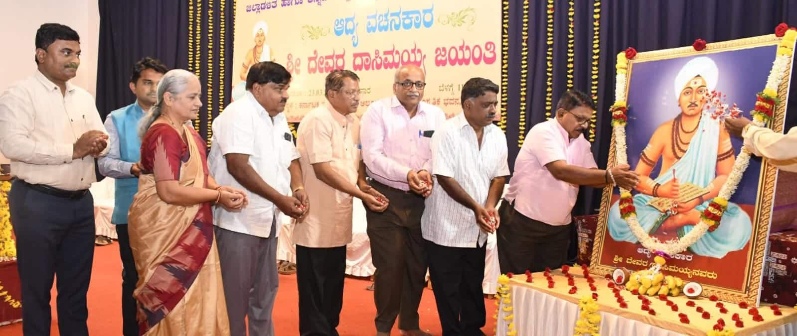ನಗರದ ಆಲೂರು ವೆಂಕಟರಾವ್ ಸಾಂಸ್ಕೃತಿಕ ಭವನದಲ್ಲಿ ಜಿಲ್ಲಾಡಳಿತ ಆಯೋಜಿಸಿದ್ದ ಆದ್ಯ ವಚನಕಾರ ಶ್ರೀ ದೇವರ ದಾಸಿಮಯ್ಯ ಜಯಂತಿ ಉದ್ಘಾಟಿಸಿ ಮಾತನಾಡಿದರು.ದಾಸಿಮಯ್ಯ ಅವರ ವಚನಗಳು ಸರಳತೆ, ಸಮಾನತೆ ಹಾಗೂ ಭಕ್ತಿ ತತ್ವಗಳನ್ನು ಸಾರುತ್ತವೆ. ಅವರು ಜಾತಿ ಬೇಧವನ್ನು ವಿರೋಧಿಸಿ, ಮಾನವೀಯ ಮೌಲ್ಯಗಳನ್ನು ಉತ್ತೇಜಿಸಿದ ಮಹಾನ್ ಸಂತರು. ಅವರ ಸಂದೇಶಗಳು ಇಂದಿನ ಸಮಾಜದಲ್ಲಿಯೂ ಪ್ರಸ್ತುತ ಎಂದರು.ಬೆಂಗಳೂರು ದೇವಾಂಗ ಸಮಾಜದ ಸಂಘಟನಾಕಾರ ರವೀಂದ್ರ ಪಾಟೀಲ ಮಾತನಾಡಿ, ಮಕ್ಕಳನ್ನು ಕೇವಲ ಆಟ-ಪಾಠಗಳಲ್ಲೇ ತೊಡಗಿಸುವುದರಿಂದ ಅವರ ಮನರಂಜನೆ ಮತ್ತು ಮೂಲಭೂತ ಶಿಕ್ಷಣ ಬೆಳೆಯುತ್ತದೆ. ನಮ್ಮ ಪೂರ್ವಜರು ಯಾವ ರೀತಿಯ ವೃತ್ತಿಗಳನ್ನು ಮಾಡುತ್ತಿದ್ದರು. ಅವರು ಎದುರಿಸಿದ ಸವಾಲುಗಳು ಏನು, ಅವರು ಹೇಗೆ ಶ್ರಮಪಟ್ಟು ಜೀವನ ನಡೆಸಿದರು ಎಂಬುದನ್ನು ಮಕ್ಕಳಿಗೆ ವಿವರಿಸಿದರೆ, ಅವರು ಶ್ರಮದ ಮೌಲ್ಯವನ್ನು ಅರ್ಥ ಮಾಡಿಕೊಳ್ಳುತ್ತಾರೆ. ಇದರಿಂದ ಮಕ್ಕಳಲ್ಲಿ ಪರಿಶ್ರಮ, ಪ್ರಾಮಾಣಿಕತೆ ಮತ್ತು ಜವಾಬ್ದಾರಿತನದ ಗುಣಗಳು ಬೆಳೆಯುತ್ತವೆ ಎಂದರು.