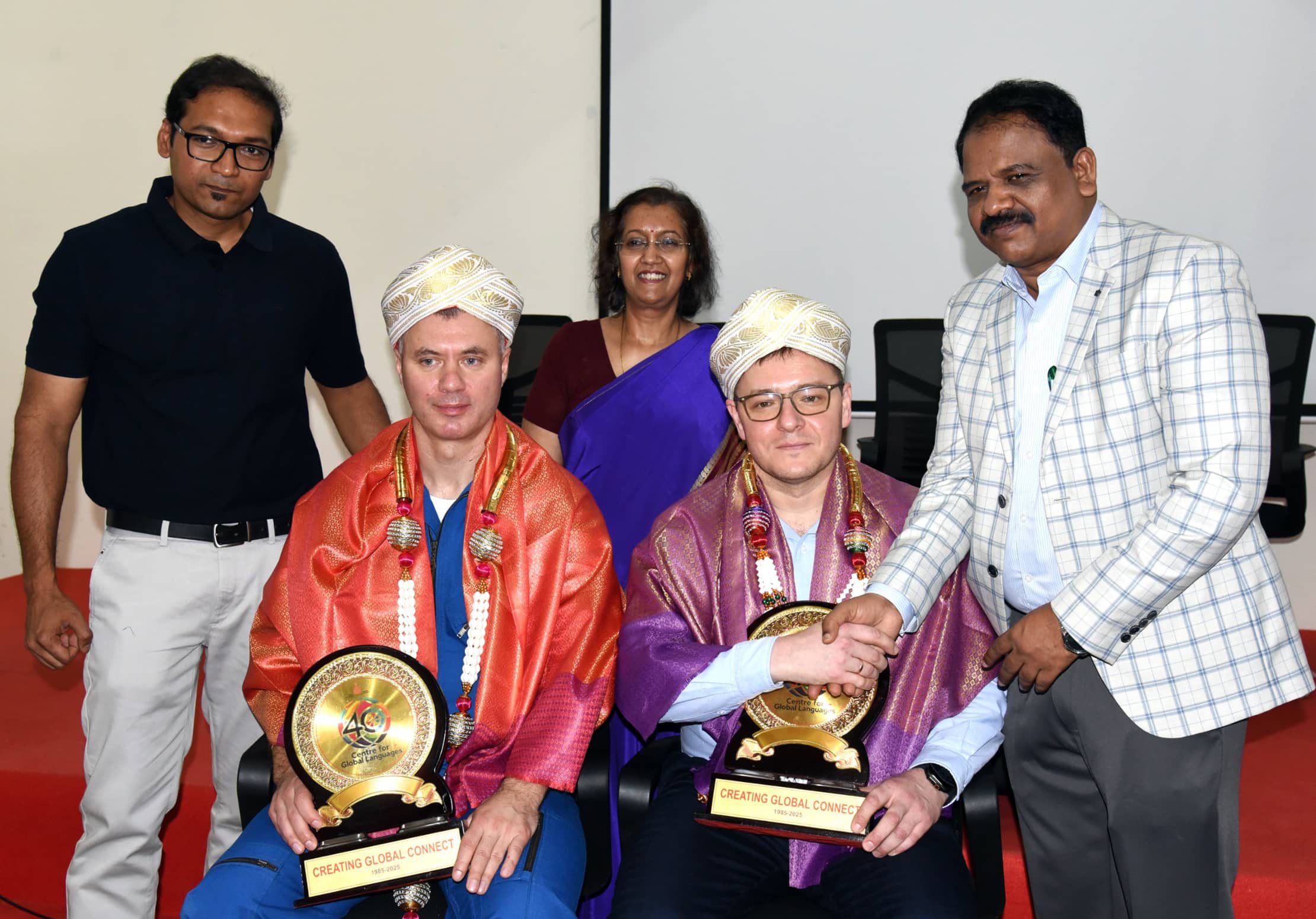 ಸಂವಾದ ಕಾರ್ಯಕ್ರಮದಲ್ಲಿ ರಷ್ಯನ್ ಗಗನಯಾತ್ರಿಗಳನ್ನು ಅಬಿನಂದಿಸಲಾಯಿತು.