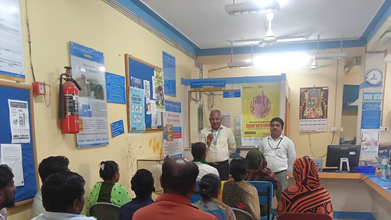 ಗ್ರಾಹಕರು ಮತದಾನದ ದಿನ ತಪ್ಪದೇ ಮತಗಟ್ಟೆಗೆ ಹೋಗಿ ಮತದಾನ ಮಾಡಿ, ನಿಮ್ಮ ಮತ ಅಮೂಲ್ಯವಾದದ್ದು, ಅದನ್ನು ಹಣದ ಆಸೆಗೆ ಮಾರಿಕೊಳ್ಳಬೇಡಿ ಎಂದು ಭಾರತೀಯ ಸ್ಟೇಟ್ ಬ್ಯಾಂಕಿನ ಆರ್ಥಿಕ ಸಾಕ್ಷರತೆ ಸಲಹೆಗಾರ ಪಿ.ಎಸ್.ಚಿಮ್ಮಲಗಿ ಹೇಳಿದರು.