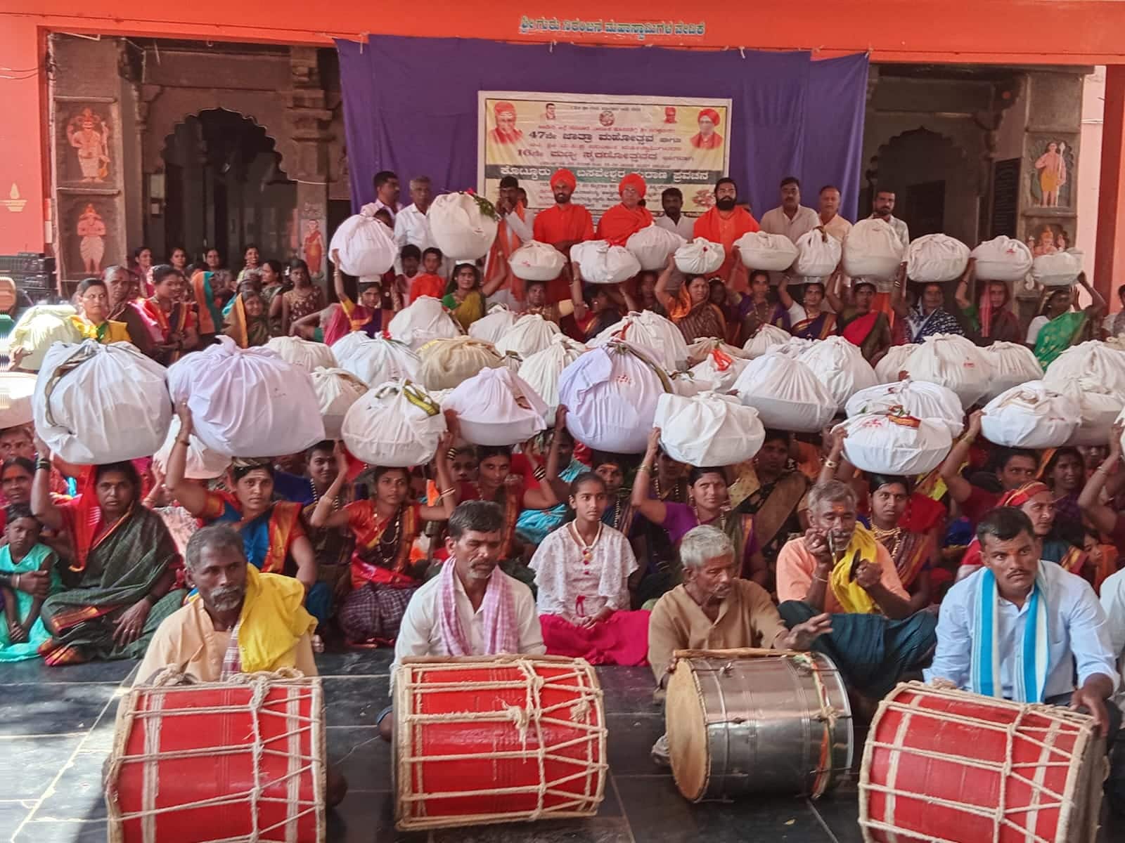 ಸಕಲ ವಾದ್ಯ ವೈಭವಗಳೊಂದಿಗೆ ಗ್ರಾಮದ ಬೀದಿ ಬೀದಿಗಳಲ್ಲಿ ರೊಟ್ಟಿ ತುಂಬಿದ ಬುಟ್ಟಿಗಳನ್ನು ತಲೆ ಮೇಲೆ ಹೊತ್ತು ತರುತ್ತಿರುವ ನೂರಾರು ಮಹಿಳೆಯರು ಕಂಡುಬಂದರು. ಆನಂತರ ಶ್ರೀಮಠದಲ್ಲಿ ರೊಟ್ಟಿ ತಂದು ಸಂಗ್ರಹಿಸಿದರು. ಈ ವೇಳೆ ಭಕ್ತರಿಗೆ ಅನ್ನ ಪ್ರಸಾದದ ವ್ಯವಸ್ಥೆ ಮಾಡಲಾಗಿತ್ತು.