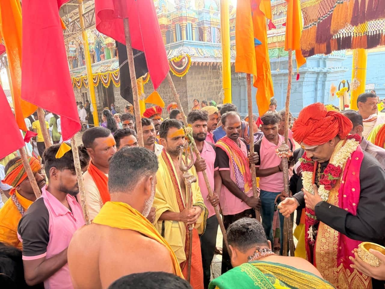 ರಾಣಿಬೆನ್ನೂರು ತಾಲೂಕಿನ ಮೇಡ್ಲೇರಿ ಸೇರಿದಂತೆ ಸುತ್ತಮುತ್ತಲಿನ ಕುರಿಗಾಹಿಗಳು, ಮೈಲಾರಲಿಂಗೇಶ್ವರ ಸ್ವಾಮಿ ಸ್ಮರಿಸಿ ತಮ್ಮ ಕುರಿಹಟ್ಟಿಯಲ್ಲಿರುವ ಕುರಿ ಹಾಲನ್ನು ಕರೆದು ಮಣ್ಣಿನ ಮಡಿಕೆಯಲ್ಲಿ ಹಾಕಿ ತಲೆಮೇಲಿಟ್ಟುಕೊಂಡು ಸುಕ್ಷೇತ್ರಕ್ಕೆ ಪಾದಯಾತ್ರೆ ಬರುತ್ತಾರೆ. ತುಂಗಭದ್ರಾ ನದಿಯನ್ನು ದಾಟಿದ ತಕ್ಷಣವೇ ಆ ಹಾಲು ಮೊಸರಾಗುತ್ತದೆ. ಅದೇ ಮೊಸರನ್ನು ದೇವರಿಗೆ ಅರ್ಪಿಸಿದ ಬಳಿಕ ಎಲ್ಲರೂ ಪ್ರಸಾದ ಸ್ವೀಕರಿಸಿದರು.ಪೊಲೀಸ್ ಬಂದೋಬಸ್ತ್: