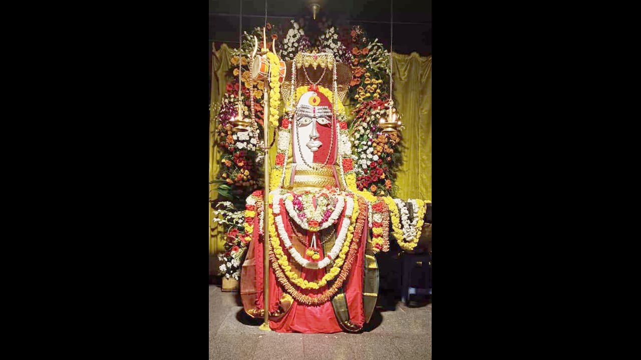 ಸಿಂಧನೂರು ತಾಲೂಕಿನ ಗಾಂಧಿನಗರದ ಶಿವ ದೇವಾಲಯದಲ್ಲಿ ಮೂರ್ತಿಗೆ ಅಲಂಕಾರ ಮಾಡಿರುವುದು