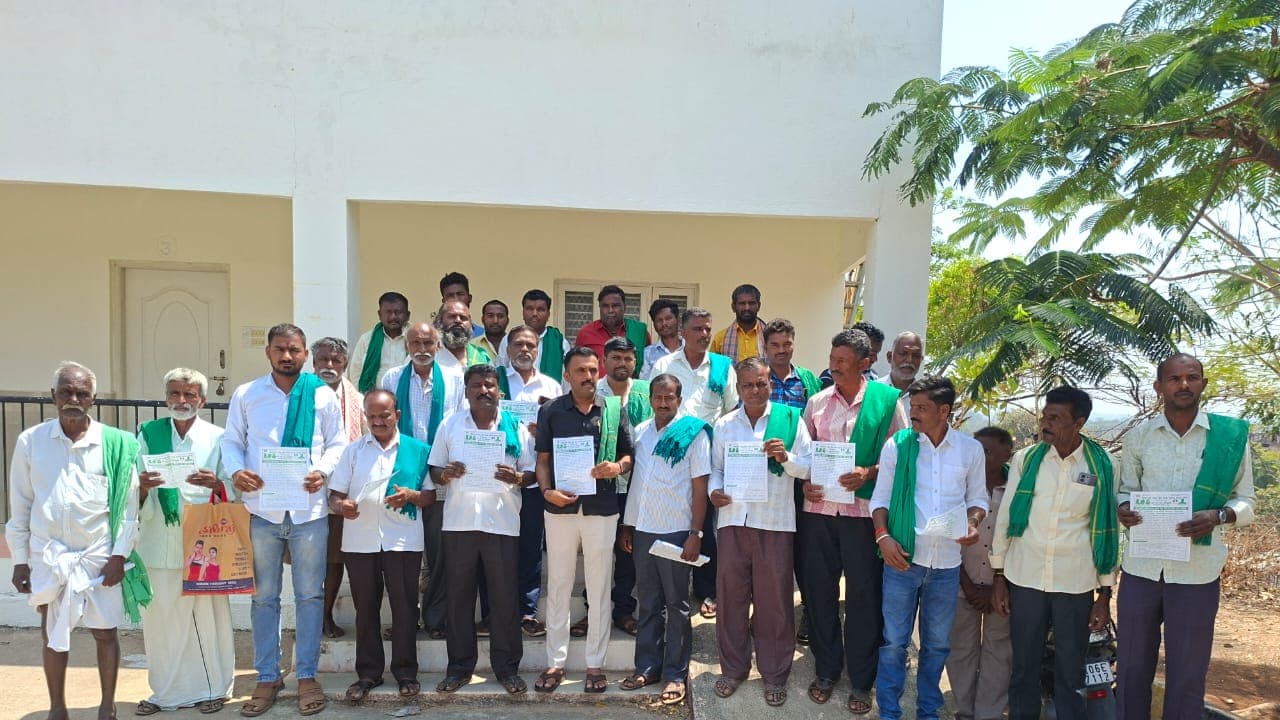 ಜಿಲ್ಲಾಧ್ಯಕ್ಷ ಕೆ.ಎಸ್ ಧನಂಜಯಾರಾಧ್ಯ ಮಾತನಾಡಿ, ಭದ್ರ ಮೇಲ್ದಂಡೆ, ಎತ್ತಿನಹೊಳೆ, ಹೇಮಾವತಿ ನೀರಿನ ಯೋಜನೆಯನ್ನು ತ್ವರಿತಗತಿಯಲ್ಲಿ ಪೂರ್ಣಗೊಳಿಸಿ ಕೆರೆ-ಕಟ್ಟೆಗಳಿಗೆ ನೀರು ಒದಗಿಸಬೇಕು, ಬಾಕಿಯಿರುವ ಸಾಗುವಳಿಯನ್ನು ರೈತರಿಗೆ ಮಂಜೂರು ಮಾಡಬೇಕು. ೨೦೧೩ರ ಕಾಯ್ದೆಯಂತೆ ಕೃಷಿ ಭೂಮಿಯನ್ನು ರೈತರಿಂದ ಬಲವಂತವಾಗಿ ವಶಪಡಿಸಿಕೊಳ್ಳಬಾರದು, ಭೂಮಿಯನ್ನು ಸ್ವಾಧೀನ ಪಡಿಸಿಕೊಂಡು ಕೈಗಾರಿಕೆ ಕಂಪನಿ ರೈತರ ಮಕ್ಕಳಿಗೆ ಉದ್ಯೋಗ ಕಲ್ಪಿಸಬೇಕು ಎಂದು ಹೇಳಿದರು. ತಾಲೂಕು ಅಧ್ಯಕ್ಷ ಸಿದ್ದರಾಜು ಮಾತನಾಡಿ, ರೈತರು ಜಿಲ್ಲೆಯಲ್ಲಿ ನಾನಾ ಸಮಸ್ಯೆ ಎದುರಿಸುತ್ತಿದ್ದಾರೆ. ವಿದ್ಯುತ್ ಇಲಾಖೆ ರೈತರಿಗೆ ಸಮರ್ಪಕ ವಿದ್ಯುತ್ ನೀಡದೆ ಕಣ್ಣಾಮುಚ್ಚಾಲೆ ಆಡುತ್ತಿದೆ. ರೈತರಿಗೆ ಹೊಸ ವಿದ್ಯುತ್ ಸಂಪರ್ಕ ಪಡೆಯಲು ಟಿ.ಸಿ ಕಂಬ, ಲೈನ್ ಇತರೆ ಉಪಕರಣಗಳ ಖರ್ಚು ವೆಚ್ಚಗಳನ್ನು ತ್ವರಿತವಾಗಿ ಭರಿಸಬೇಕಿದೆ ಎಂದು ಹೇಳಿದರು. ಈ ವೇಳೆ ಜಿಲ್ಲಾ ಉಪಾಧ್ಯಕ್ಷ ಲೋಕಣ್ಣ, ಜಿಲ್ಲಾ ಕಾರ್ಯದರ್ಶಿ ಪುಟ್ಟರಾಜು, ಕೆಂಪರಾಜು, ರಾಮಚಂದ್ರಯ್ಯ, ಮಲ್ಲೇಶಯ್ಯ, ವೀರಯ್ಯ, ಲಕ್ಷ್ಮನಾಯ್ಕ, ಲಚ್ಚಿರಾಮನಾಯ್ಕ್ ಗಿರೀಶ್ ಆರಾಧ್ಯ, ಸಿದ್ದನಂಜರಾಧ್ಯ ಸೇರಿದಂತೆ ತಾಲೂಕಿನ ರೈತ ಸಂಘದ ಪ್ರಮುಖರು ಹಾಜರಿದ್ದರು.