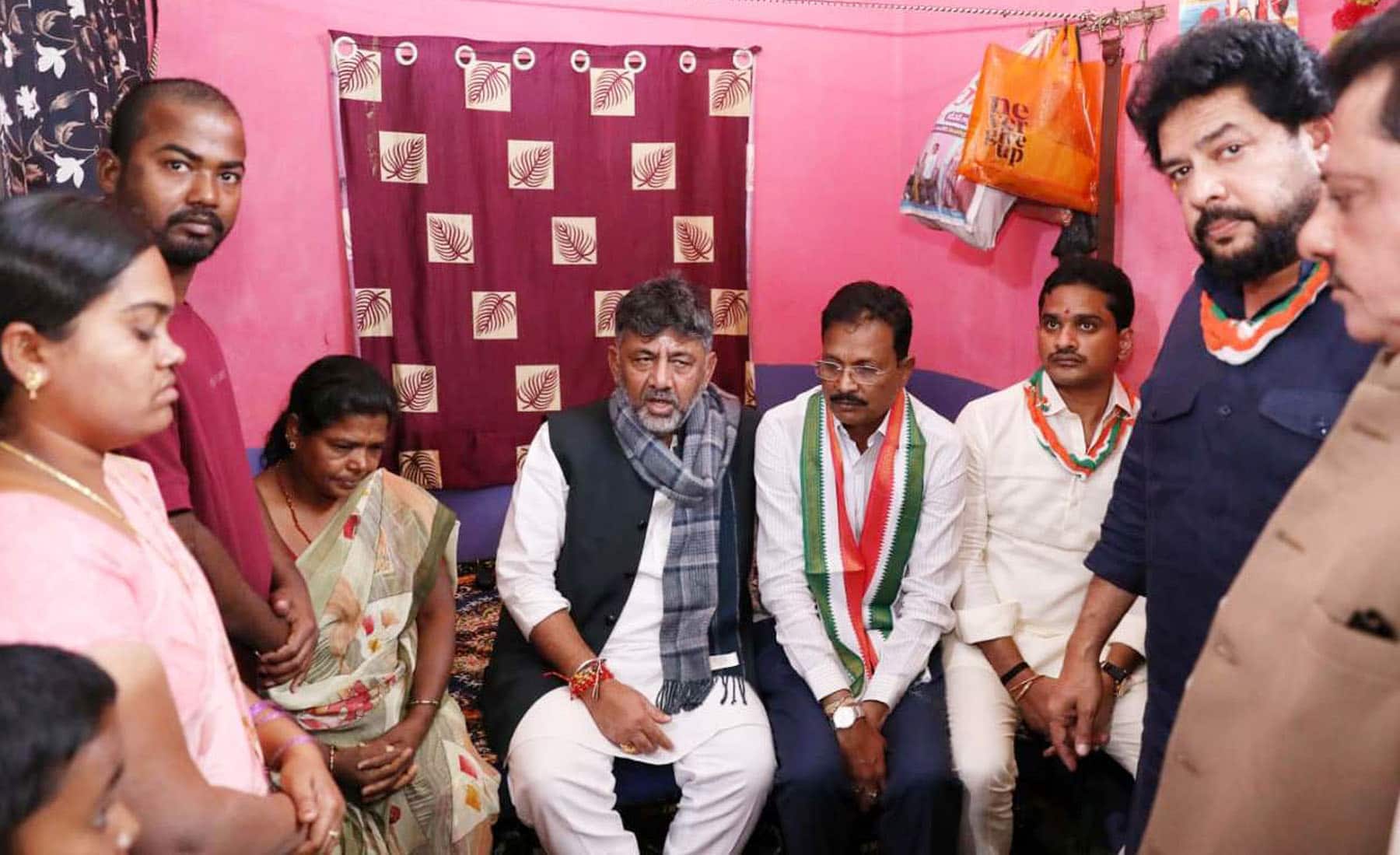 ಬಳ್ಳಾರಿ: ಬ್ಯಾನರ್ ಗಲಭೆಯಲ್ಲಿ ಮೃತ ಯುವಕ ರಾಜಶೇಖರ ಅವರ ಕುಟುಂಬಕ್ಕೆ ಸಾಂತ್ವನ ಹೇಳಲು ಕೆಪಿಸಿಸಿ ಅಧ್ಯಕ್ಷ ಹಾಗೂ ಉಪ ಮುಖ್ಯಮಂತ್ರಿ ಡಿ.ಕೆ. ಶಿವಕುಮಾರ್ ನಗರಕ್ಕೆ ಆಗಮಿಸಿದ್ದರಾದರೂ ಇಡೀ ದಿನದ ರಾಜಕೀಯ ಚಟುವಟಿಕೆ ಗಮನಿಸಿದರೆ ಪ್ರಕರಣವನ್ನು ಸಮರ್ಥಿಸಿಕೊಳ್ಳಲೆಂದೇ ಡಿಕೆಶಿ ಬಳ್ಳಾರಿಗೆ ಆಗಮಿಸಿದಂತೆ ಕಂಡು ಬಂತು.