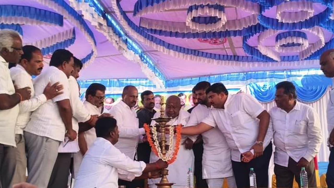 ಅರಸೀಕೆರೆಯ ಎನ್.ಆರ್.ಸಂತೋಷ್ ಅವರ ನಿವಾಸದ ಬಳಿ ನಡೆದ ಪಕ್ಷದ ಚುನಾಯಿತ ಪ್ರತಿನಿಧಿಗಳು, ಮುಖಂಡರು ಹಾಗೂ ಕಾರ್ಯಕರ್ತರ ಸಭೆಯಲ್ಲಿ ಅವರು ಮಾಜಿ ಪ್ರಧಾನಿ ಎಚ್.ಡಿ.ದೇವೇಗೌಡ ಮಾತನಾಡಿದರು.