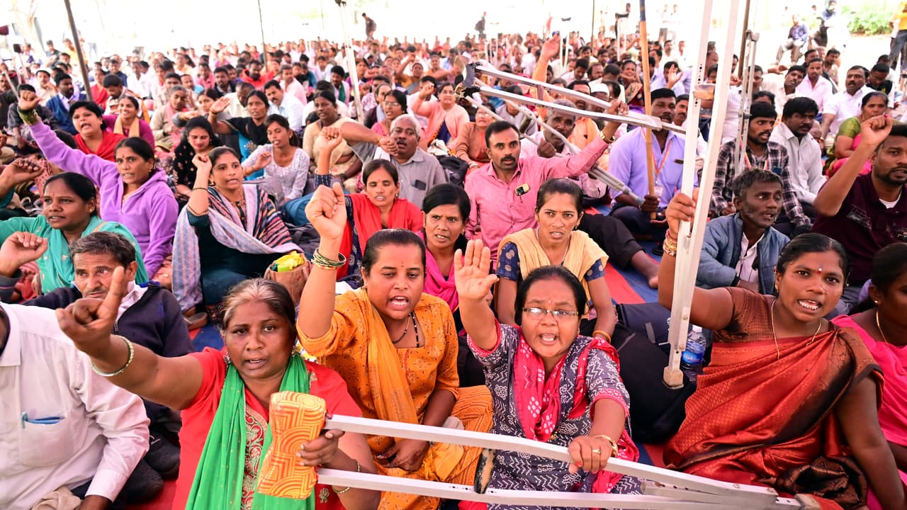 ಫೋಟೋಸ್ವಾತಂತ್ರ್ಯ ಉದ್ಯಾನದಲ್ಲಿ ಗುರುವಾರದಿಂದ ಅನಿರ್ದಿಷ್ಟಾವಧಿ ಧರಣಿ ಆರಂಭಿಸಿರುವ ಎಂಆರ್ಡಬ್ಲೂ, ವಿಆರ್ಡಬ್ಲೂ, ಯುಆರ್ಡಬ್ಲೂ ನೌಕರರು.