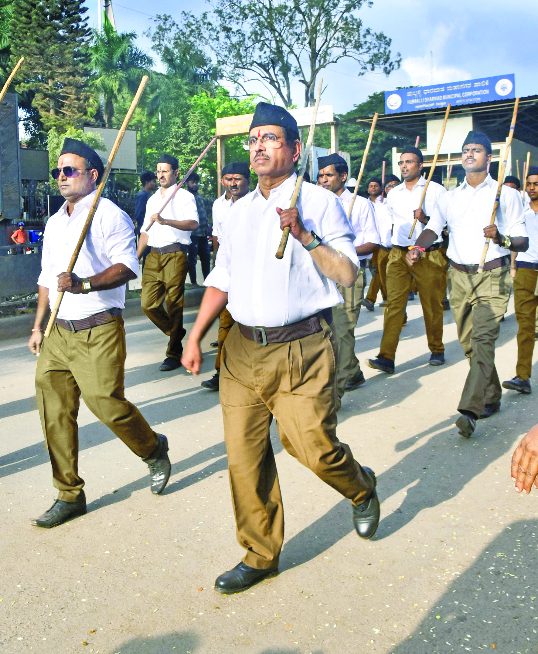 ಇದು ರಾಷ್ಟ್ರೀಯ ಸ್ವಯಂ ಸೇವಕ ಸಂಘದ ಶತಾಬ್ದಿ ವರ್ಷ ಹಾಗೂ ವಿಜಯ ದಶಮಿ ಅಂಗವಾಗಿ ಹುಬ್ಬಳ್ಳಿ ಮಹಾನಗರ ಘಟಕದ ನೇತೃತ್ವದಲ್ಲಿ ಭಾನುವಾರ ನಡೆದ ಆರ್ಎಸ್ಎಸ್ ಪಥ ಸಂಚಲನದ ನೋಟ.