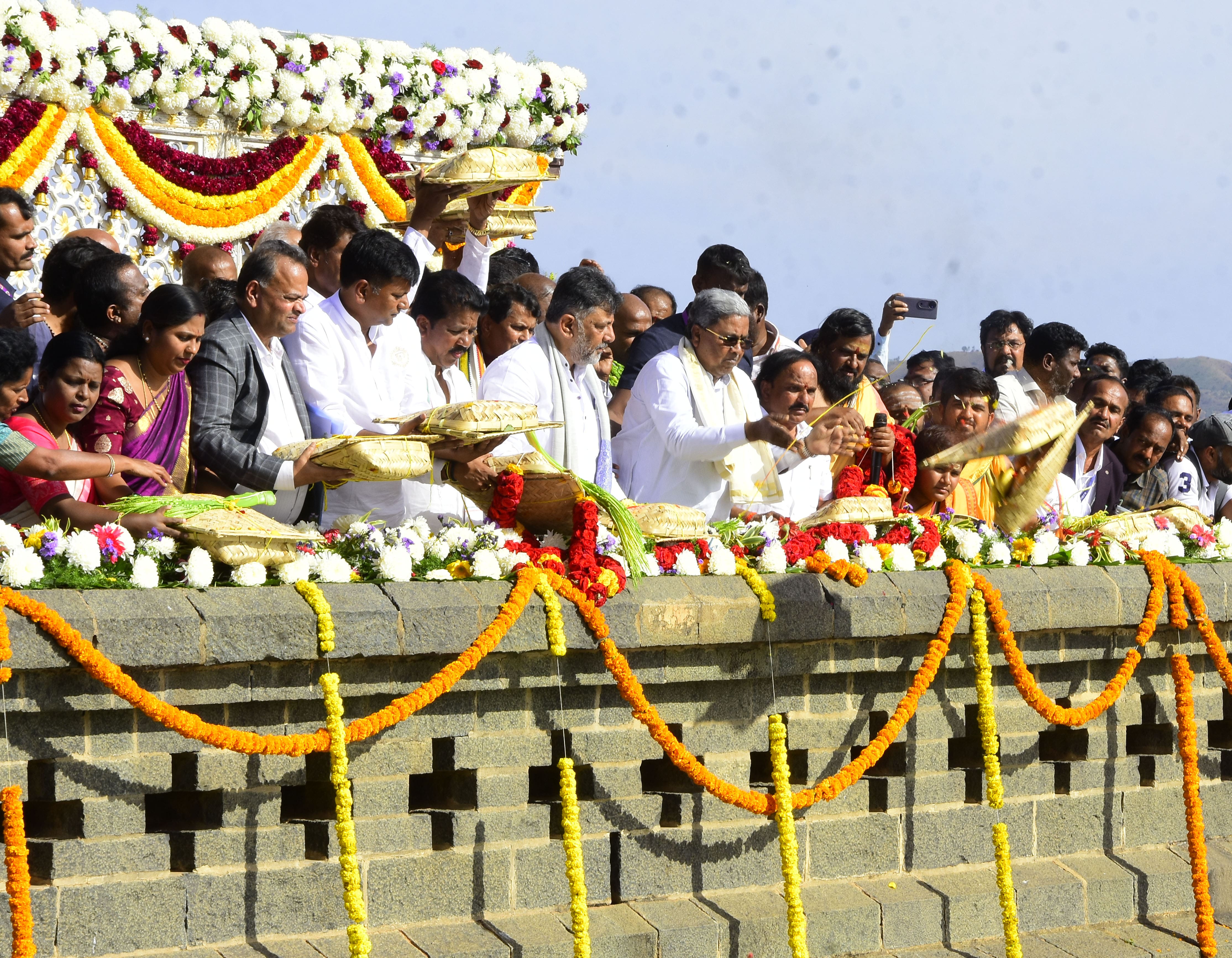 ಮುಖ್ಯಮಂತ್ರಿ ಸಿದ್ದರಾಮಯ್ಯ ಭರ್ತಿಯಾದ ವಾಣಿ ವಿಲಾಸ ಸಾಗರ ಜಲಾಶಯಕ್ಕೆ ಬಾಗಿನ ಸಮರ್ಪಣೆ ಮಾಡಿದರು.