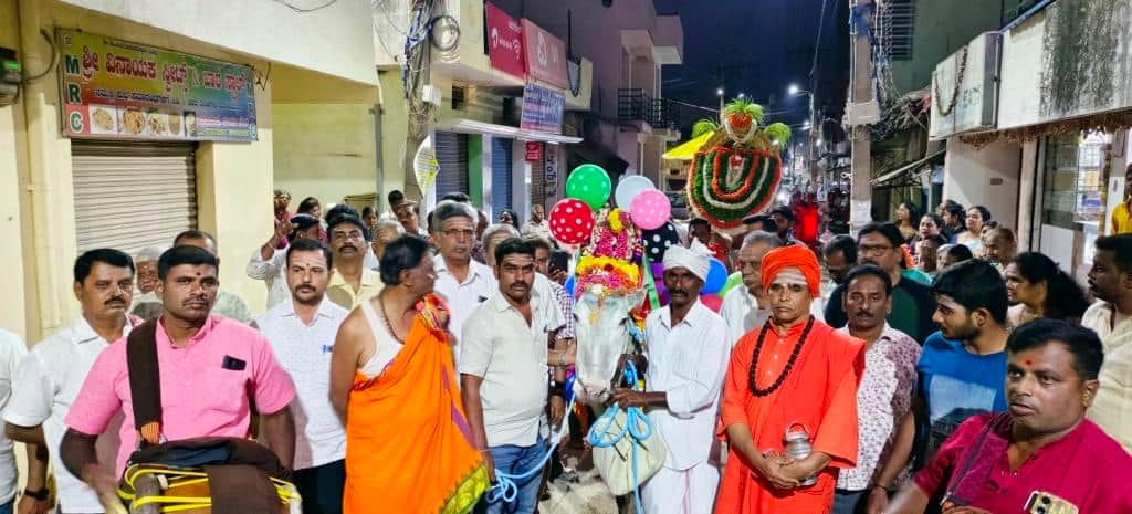 ಜಡೆದೇವರ ಮಠಾಧ್ಯಕ್ಷರಾದ ಇಮ್ಮಡಿ ಬಸವರಾಜ ಸ್ವಾಮೀಜಿ ರಾಸುಗಳ ಮೆರವಣಿಗೆಗೆ ಚಾಲನೆ ನೀಡಿ ಮಾತನಾಡಿ, ಸಂಕ್ರಾಂತಿ ಹಬ್ಬ ರೈತರ ಹಬ್ಬವಾಗಿದ್ದು, ರೈತರು ಬೆಳೆದ ಬೆಳೆಯನ್ನು ಪೂಜೆ ಮಾಡಿ ಮನೆಗೆ ತರುವ ಹಬ್ಬವಾಗಿದೆ. ಈ ಸಮಯದಲ್ಲಿ ಮನೆ ತುಂಬಾ ಬೆಳೆದ ಬೆಳೆ ಬಂದಿರುವುದರಿಂದ ರೈತರು ಈ ಸಮಯದಲ್ಲಿ ರಾಶಿಗಳಿಗೆ ವಿಶೇಷ ಪೂಜೆ ಸಲ್ಲಿಸಿ ಕಿಚ್ಚು ಹಾಯಿಸಿ ಸಂಭ್ರಮಿಸುವ ಹಬ್ಬವಾಗಿದೆ ಎಂದು ಹೇಳಿದರು.ಪಟ್ಟಣದ ಅರಳೆಪೇಟೆಯ ಬಸವೇಶ್ವರ ಸ್ವಾಮಿಗೆ ವಿಶೇಷ ಪೂಜೆ ಸಲ್ಲಿಸಿ ಉತ್ಸವ ಮೂರ್ತಿಯನ್ನು ಡೂಮ್ ಲೈಟ್ ವೃತ್ತದವರೆಗೂ ಅದ್ದೂರಿ ಮೆರವಣಿಗೆ, ರಾಶಿಗಳಿಗೆ ವಿಶೇಷ ಅಲಂಕಾರ ಮಾಡಲಾಗಿತ್ತು. ಕಳೆದ ಮೂರು ವರ್ಷಗಳಿಂದಲೂ ಕಡಲೆಕಾಯಿ ಪರಿಷೆ ಮಾಡುತ್ತಿದ್ದು ಒಂದು ರು.ಪಾಯಿಗೆ ಒಂದು ಕೆಜಿಯಂತೆ ವಿತರಣೆ ಮಾಡಲಾಯಿತು. ಒಂದು ಸಾವಿರ ಕೆಜಿ ಕಡಲೆ ಕಾಯಿ, 500 ಕೆಜಿ ಗೆಣಸು ಹಾಗೂ ಸಾರ್ವಜನಿಕರಿಗೆ ವಿಶೇಷವಾಗಿ 5 ಸಾವಿರ ತಟ್ಟೆ ಇಡ್ಲಿ, ಪೊಂಗಲ್ ಅನ್ನು ಪ್ರಸಾದವಾಗಿ ವಿತರಣೆ ಮಾಡುವ ಮೂಲಕ ಸಂಕ್ರಾಂತಿ ಹಬ್ಬವನ್ನು ಸಂಭ್ರಮದಿಂದ ಆಚರಿಸಲಾಯಿತು.