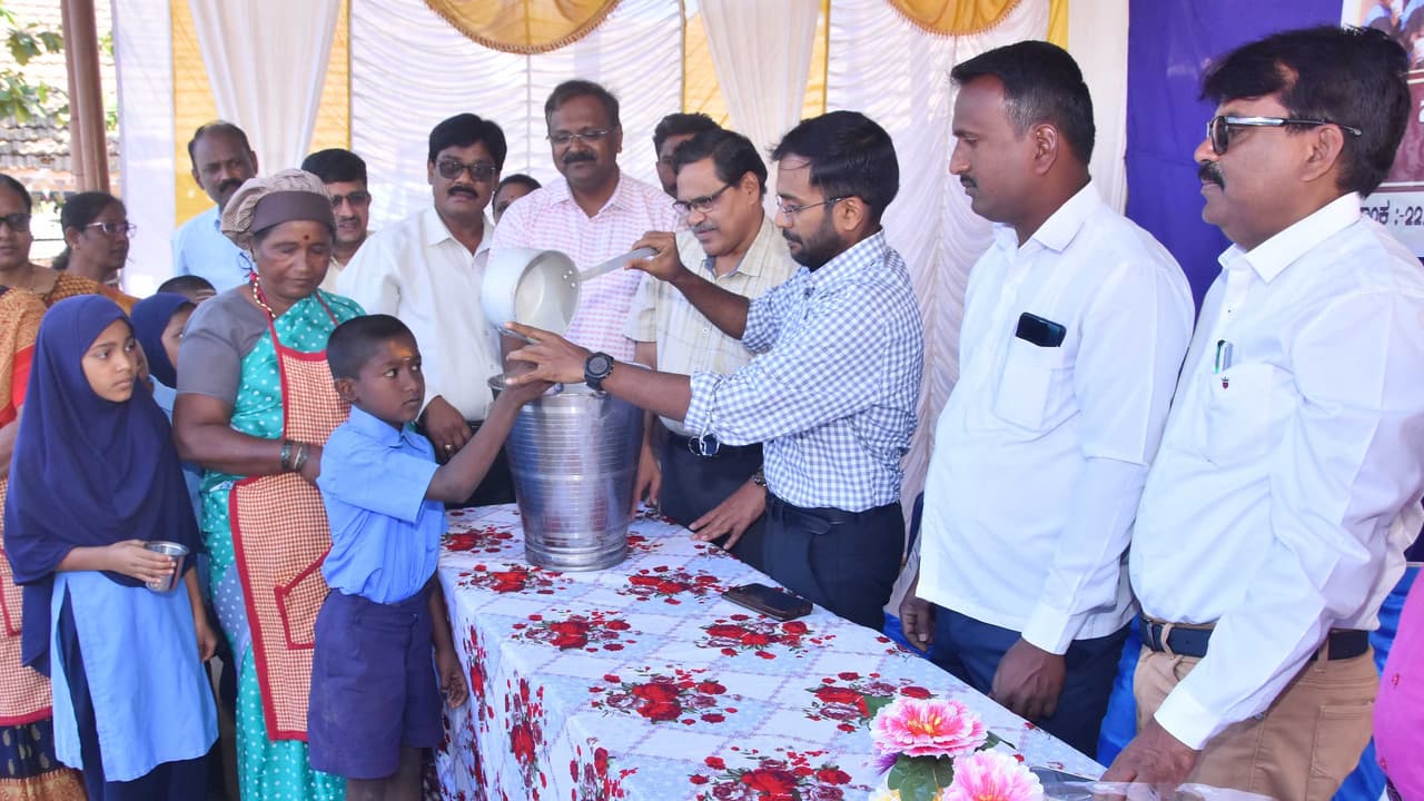 ವಿದ್ಯಾರ್ಥಿಗಳಿಗೆ ರಾಗಿ ಮಾಲ್ಟ್ ವಿತರಿಸಿ ಮಾತನಾಡುವ ಸಂದರ್ಭದಲ್ಲಿ ಜಿಲ್ಲಾ ಪಂಚಾಯಿತಿ ಮುಖ್ಯ ಕಾರ್ಯನಿರ್ವಹಣಾಧಿಕಾರಿ ಅಕ್ಷಯ್ ಶ್ರೀಧರ್ ಯಾರ್ಯಾರು ಬೆಳಗಿನ ಉಪಹಾರ ಸೇವಿಸಿ ಶಾಲೆಗೆ ಬಂದಿದ್ದೀರಿ, ಯಾರು ಉಪಾಹಾರ ಸೇವಿಸದೇ ಶಾಲೆಗೆ ಬಂದಿರುವುದಾಗಿ ಕೈ ಎತ್ತಿ ಹೇಳಿ ಎಂದಾಗ ಶಾಲೆಯ ಅರ್ಧದಷ್ಟು ವಿದ್ಯಾರ್ಥಿಗಳು ಉಪಾಹಾರ ಸೇವಿಸದೇ ಶಾಲೆಗೆ ಬಂದಿರುವುದಾಗಿ ಕೈ ಎತ್ತಿದರು.ಈ ಸಂದರ್ಭದಲ್ಲಿ ಬೆಳಗಿನ ಕಲಿಕೆಗೆ ಉಪಾಹಾರದ ಮಹತ್ವ ಕುರಿತಂತೆ ವಿವರಿಸಿ, ಶಾಲೆಯಲ್ಲಿ ನೀಡುವ ಬೆಳಗಿನ ಹಾಲು, ರಾಗಿ ಮಾಲ್ಟ್, ಚಿಕ್ಕಿ, ಮೊಟ್ಟೆ, ಬಾಳೆಹಣ್ಣು, ಮಧ್ಯಾಹ್ನದ ಬಿಸಿಯೂಟ ಸೇವಿಸುವುದರಿಂದ ಬೆಳೆಯುವ ಮಕ್ಕಳ ದೇಹದಲ್ಲಿ ಮಾನಸಿಕ ಮತ್ತು ದೇಹದ ಆರೋಗ್ಯದಲ್ಲಿ ಸದೃಢತೆ ಉಂಟಾಗುವ ಕುರಿತಂತೆ ಮನವರಿಕೆ ಮಾಡಿಕೊಟ್ಟರು.