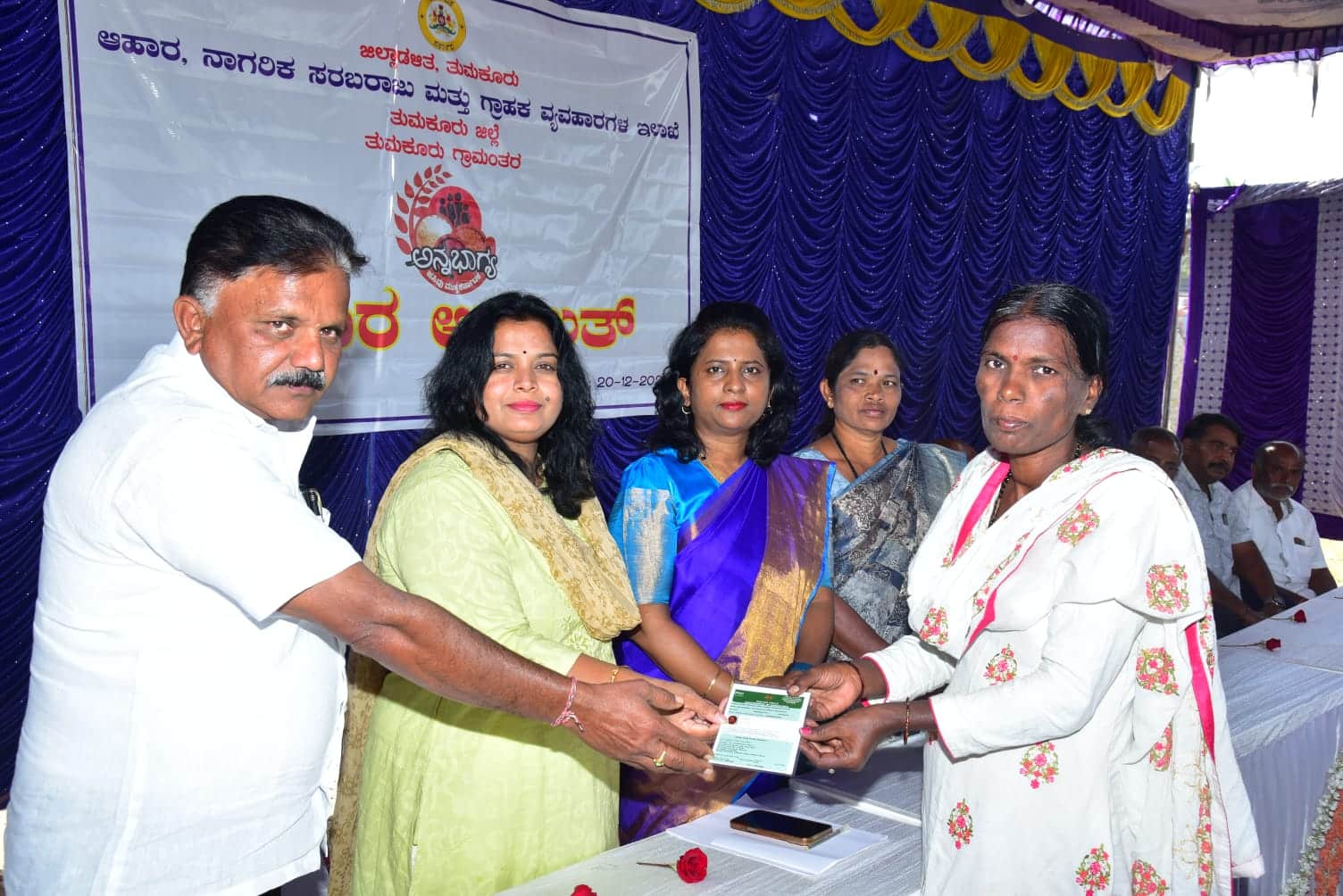 ತುಮಕೂರು ತಾಲೂಕು ತಹಸೀಲ್ದಾರ್ ರಾಜೇಶ್ವರಿ ಮಾತನಾಡಿ, ವಯೋವೃದ್ಧರಿಗೆ, ಹಾಸಿಗೆ ಹಿಡಿದಿರುವ ಪಡಿತರ ಚೀಟಿದಾರರಿಗೆ ಬಯೋಮೆಟ್ರಿಕ್ನಿಂದ ವಿನಾಯಿತಿ ನೀಡಬಹುದಾಗಿದ್ದು, ಇದರ ಸದುಪಯೋಗ ಪಡೆಯಲು ಸಲಹೆ ನೀಡಿದರು. ನಂತರ ಸಾರ್ವಜನಿಕರಿಂದ ಅಹವಾಲು ಸ್ವೀಕರಿಸಿದ ಅವರು ಅರ್ಜಿದಾರರಿಗೆ ಸ್ಥಳದಲ್ಲಿಯೇ ಪರಿಹಾರ ಒದಗಿಸಿ ಸ್ವೀಕರಿಸಿರುವ ಎಲ್ಲಾ ಅರ್ಜಿಗಳನ್ನು ತುರ್ತಾಗಿ ಪರಿಶೀಲಿಸಿ ವಿಲೇವಾರಿ ಮಾಡಲು ಆಹಾರ ನಿರೀಕ್ಷಕರಿಗೆ ಸೂಚಿಸಿದರು.ಕಾರ್ಯಕ್ರಮದಲ್ಲಿ ಊರುಕೆರೆ ಗ್ರಾಮದ ಕರಿಯಮ್ಮ, ಭಾಗ್ಯ, ಸುರೇಖಾ ಹಾಗೂ ಗೀತಾ ಹೆಬ್ಬಾಕ ಗ್ರಾಮದ ಮಹಾದೇವಮ್ಮ ಹಾಗೂ ಮಂಜಮ್ಮ; ನರಸಾಪುರ ಗ್ರಾಮದ ಎನ್.ಎಸ್ ಗೀತಾ ಹಾಗೂ ಲಕ್ಷ್ಮಿ ಎ, ಮರಿಯಪ್ಪನ ಪಾಳ್ಯದ ತಾರಾ ಎಚ್.ಎಲ್, ಅನ್ನೇನಹಳ್ಳಿಯ ಶಿಲ್ಪ ಅವರಿಗೆ ಹೊಸದಾಗಿ ಪಡಿತರ ಚೀಟಿ ವಿತರಿಸಲಾಯಿತು. ಈ ಸಂದರ್ಭದಲ್ಲಿ ಆಹಾರ ಇಲಾಖೆಯ ಅಧಿಕಾರಿಗಳು, ಕಂದಾಯ ಇಲಾಖೆಯ ಅಧಿಕಾರಿಗಳು, ವಿಎಸ್ಎಸ್ಎಸ್ಎನ್ ಊರುಕೆರೆ ಸಹಕಾರ ಸಂಘದ ಅಧ್ಯಕ್ಷರು ಹಾಗೂ ಪದಾಧಿಕಾರಿಗಳು, ಊರುಕೆರೆ ಗ್ರಾಮದ ಹಾಗೂ ಸುತ್ತಮುತ್ತಲಿನ ಗ್ರಾಮಸ್ಥರು, ನ್ಯಾಯಬೆಲೆ ಅಂಗಡಿಗಳ ಮಾಲೀಕರು/ಕಾರ್ಯದರ್ಶಿಗಳು ಹಾಜರಿದ್ದರು.