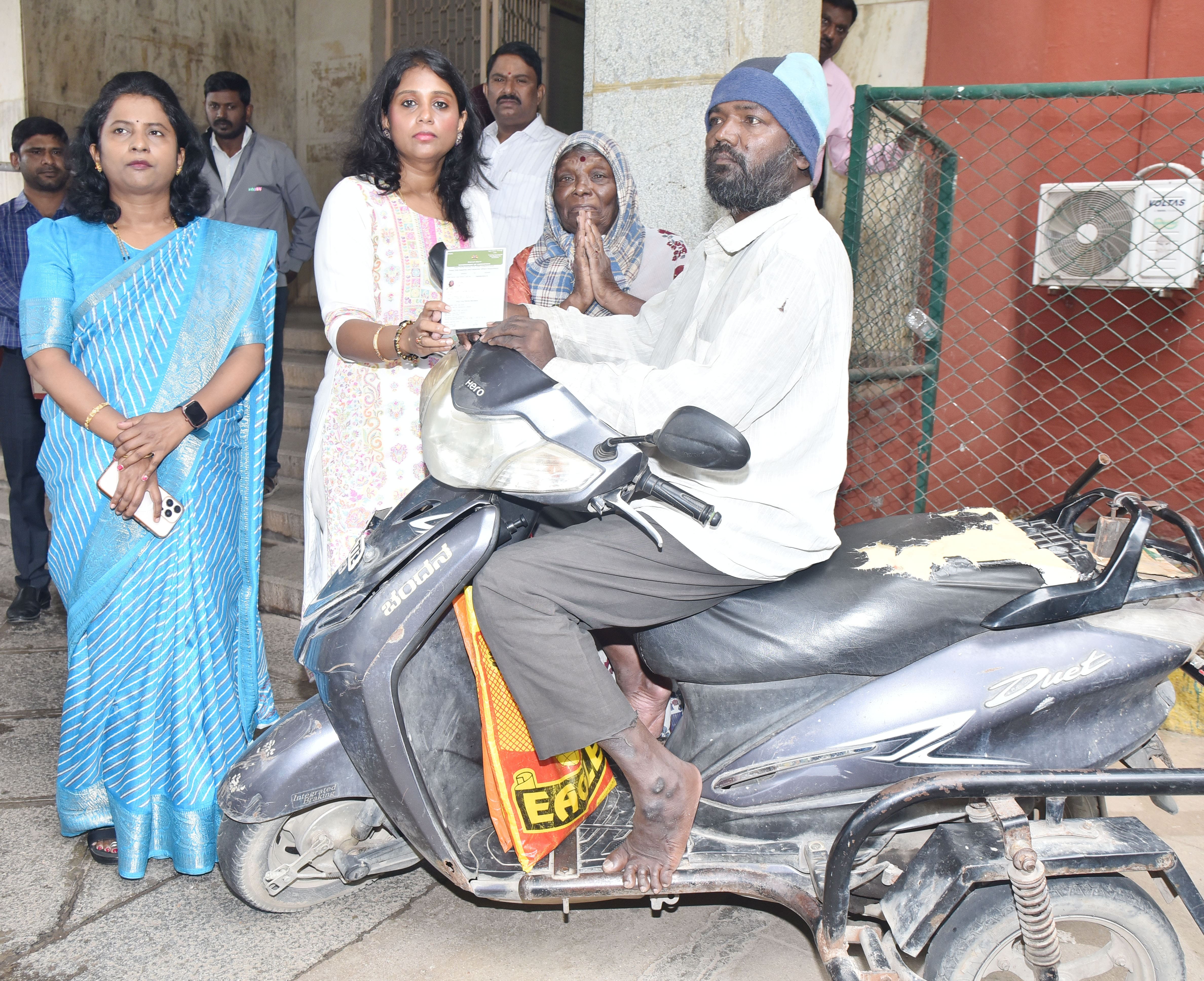 ಜಿಲ್ಲಾಧಿಕಾರಿಗಳ ಕಚೇರಿ ಆವರಣದಲ್ಲಿ ಜಿಲ್ಲಾಧಿಕಾರಿ ಶುಭ ಕಲ್ಯಾಣ್ ಅವರು ಕೋರ ಹೋಬಳಿಯ ಹೊಸಳ್ಳಿ ಗ್ರಾಮದ ನಿವಾಸಿ ದೊಡ್ಡಕ್ಕ ಅವರಿಗೆ ಹೊಸ ಪಡಿತರ ಚೀಟಿಯನ್ನು ವಿತರಿಸಿದರು.ಹೊಸಳ್ಳಿ ಗ್ರಾಮದ ದೊಡ್ಡಕ್ಕ ಅವರ ಮಗ ರಾಜು ಅವರು ವಿಕಲಚೇತನರಾಗಿದ್ದು, ಕುಟುಂಬದ ತುರ್ತು ಪರಿಸ್ಥಿತಿಯನ್ನು ಪರಿಗಣಿಸಿ ದೊಡ್ಡಕ್ಕ ಅವರ ಕಷ್ಟವನ್ನು ಮನಗಂಡು ಮೆಡಿಕಲ್ ಎಮರ್ಜೆನ್ಸಿ (ವೈದ್ಯಕೀಯ ತುರ್ತು) ಅಡಿಯ ಆದ್ಯತೆಯ ಮೇಲೆ ಹೊಸ ಪಡಿತರ ಚೀಟಿಯನ್ನು ವಿತರಿಸಿದರು.