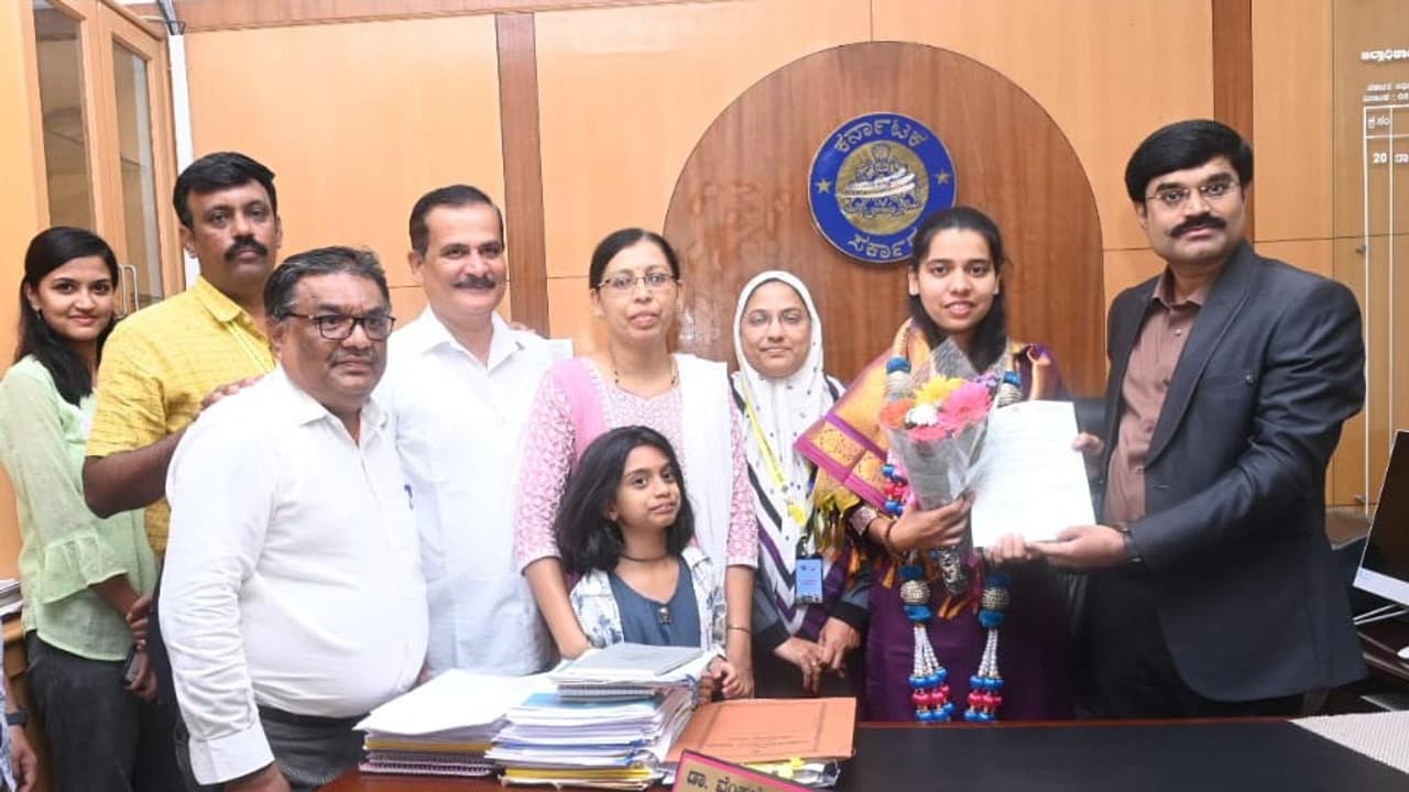 ದಾವಣಗೆರೆಯಲ್ಲಿ ಜಿಲ್ಲಾಡಳಿತದಿಂದ ಯುಪಿಎಸ್ಸಿ ಪರೀಕ್ಷೆಯಲ್ಲಿ 101ನೇ ರ್ಯಾಂಕ್ ಗಳಿಸಿದ ಸೌಭಾಗ್ಯ ಬೀಳಗಿಮಠ ಅವರಿಗೆ ಜಿಲ್ಲಾಧಿಕಾರಿ ಡಾ. ಎಂ.ವಿ. ವೆಂಕಟೇಶ್ ಅಭಿನಂದಿಸಿ ಸನ್ಮಾನಿಸಿದರು.