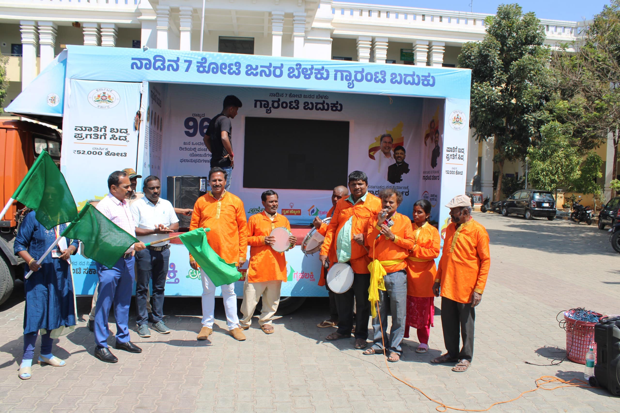 11ಕೆಡಿಬಿಪಿ1- ಬೆಂ.ಗ್ರಾ ಜಿಲ್ಲಾಡಳಿತ ಭವನದ ಮುಂಭಾಗ ಗ್ಯಾರಂಟಿ ಯೋಜನೆಗಳ ಪ್ರಚಾರ ವಾಹನಕ್ಕೆ ಜಿಲ್ಲಾಧಿಕಾರಿ ಚಾಲನೆ ನೀಡಿದರು.